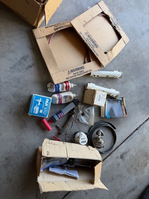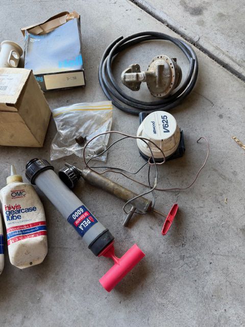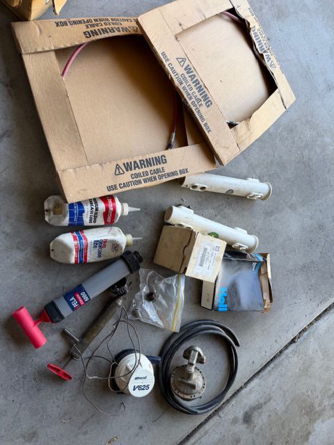 It's got a bunch of stuff from a dual throttle assemby, to 12' control cables, to a marine faucet, to pumps, oils/grease... lots of cool stuff.