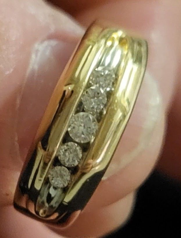 VenmoA 14k gold men's wedding channel ring with 5 natural diamonds is being offered for sale. The ring is of very high quality, nicely made and features a beautiful design. Due to sentimental reasons, I am parting with it, size 9 I am asking $650.00