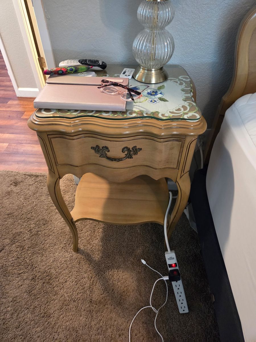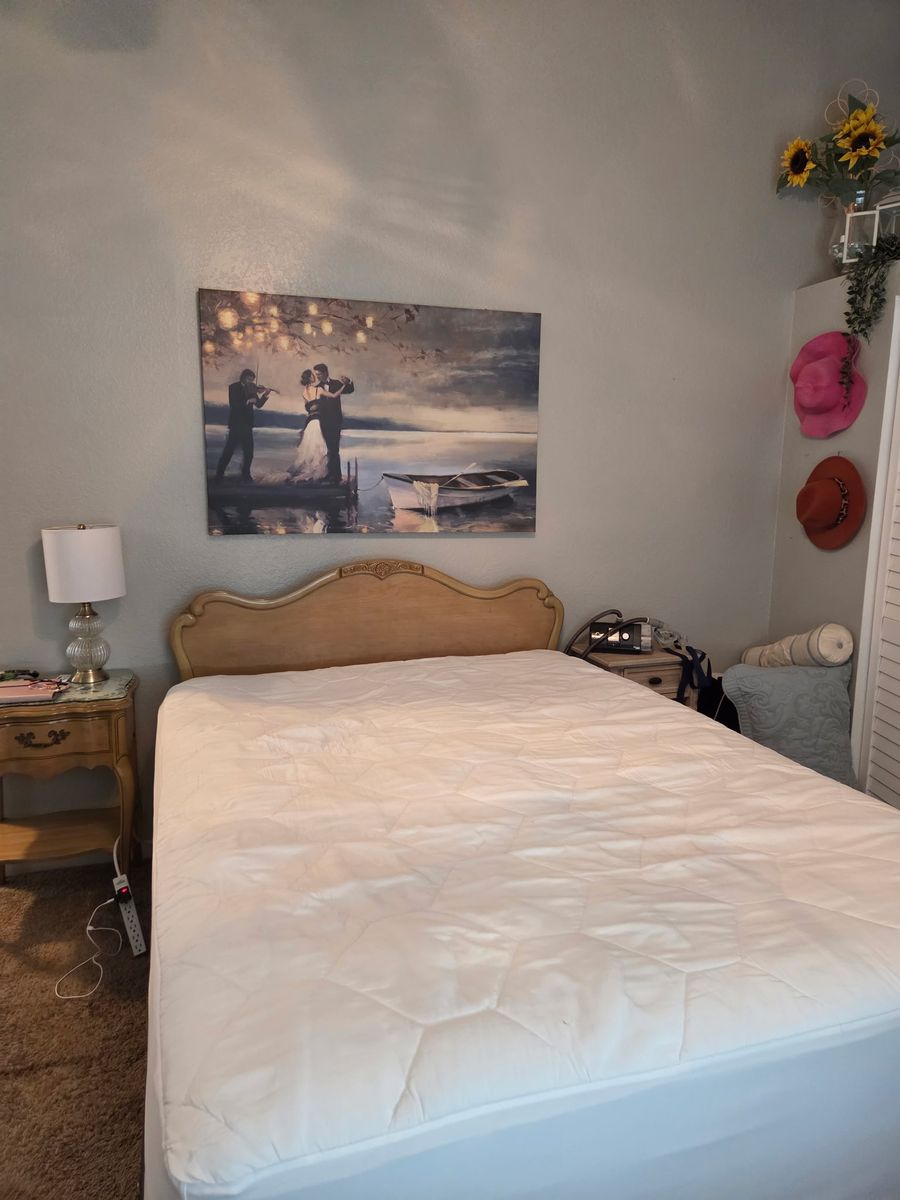 Dresser, mirror, night stand. Head board foot board and metal bed frame. Soild wood