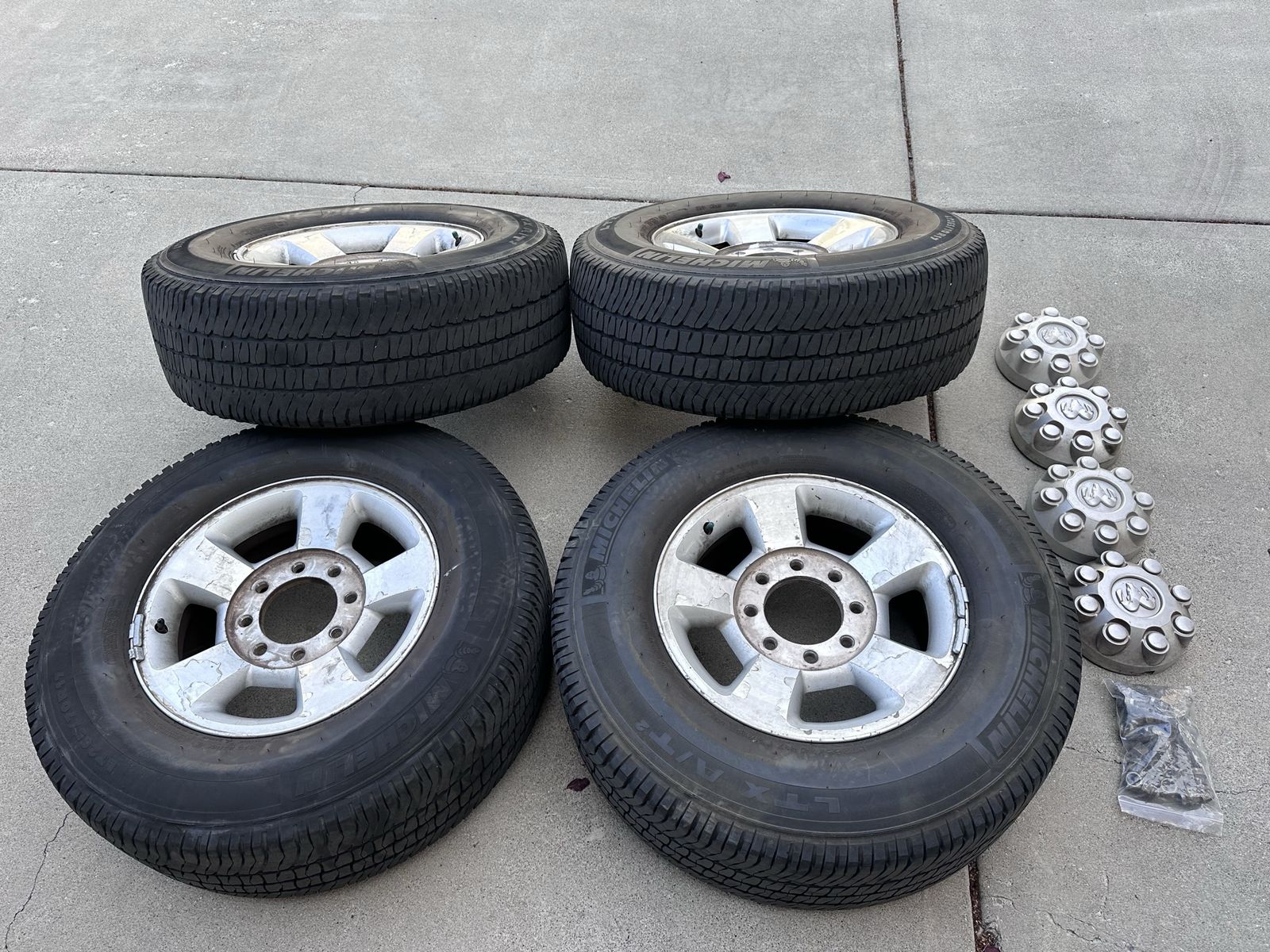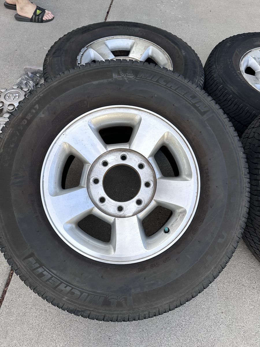 PayPalSet of 4 2004 Dodge Ram 2500 stock wheels. One of the 4 is only a couple years old. Lots of tread left in all 4 of the wheels. Tire size 265/70R17