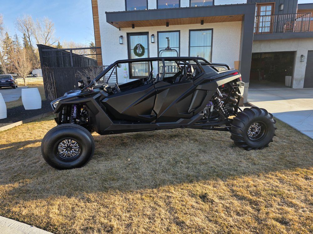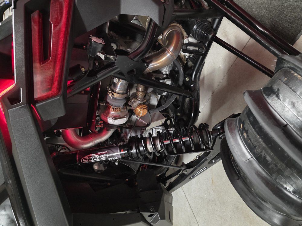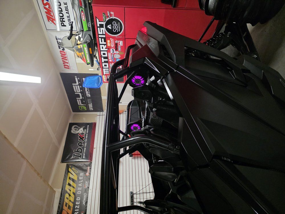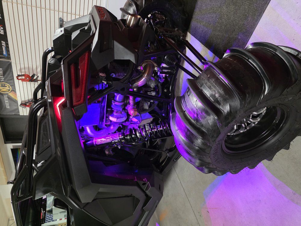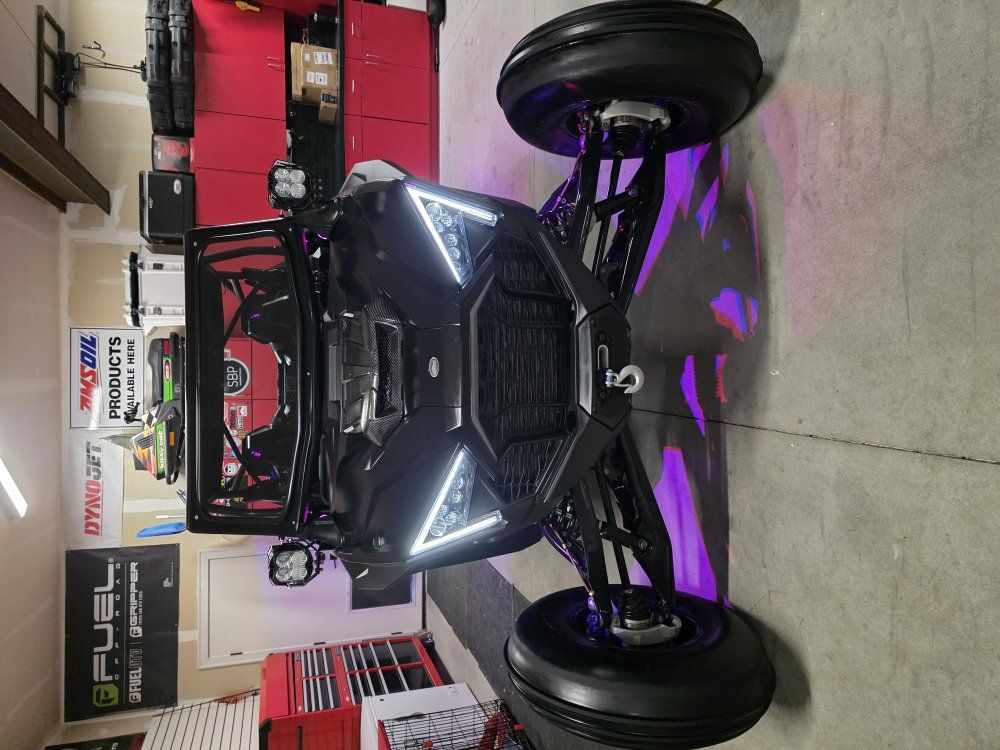 Carls Cycle custom tuned suspension ZBROZ Springs Carls Cycle clutching STM billet rear sheave Whalen Tuning with Tuner UTV Speed cage and glass windshield Comes with 2 sets of tires/wheels 1: Sand Tires Unlimited Padla Trak 16.50-15 comp cut rears, with STI sand drifter fronts on JEGG wheels 2: 35” dirt commander 2.0 tires on method wheels. Polaris 6k winch Baja Designs LP4 lights Baja Design S1 reverse lights Cage Integrated dome lights UTV Stereo Stage 7 system (sounds amazing) Fourworks Carbon Fiber Hood 8 gang switch panel AEM Trueboost boost controller MB 2 ft LED whips MB whips day whip MB 8 pod rock lights (2 in each corner) PRP door bags (Front and Rear)