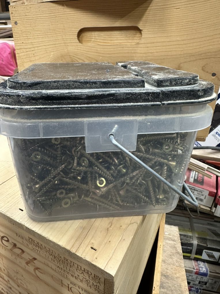 WOOD SCREWS. 10 LBS. OF 1-5/8” X # 8 COARSE AUGER THREAD SCREWS. FULL 10 LB CONTAINER.