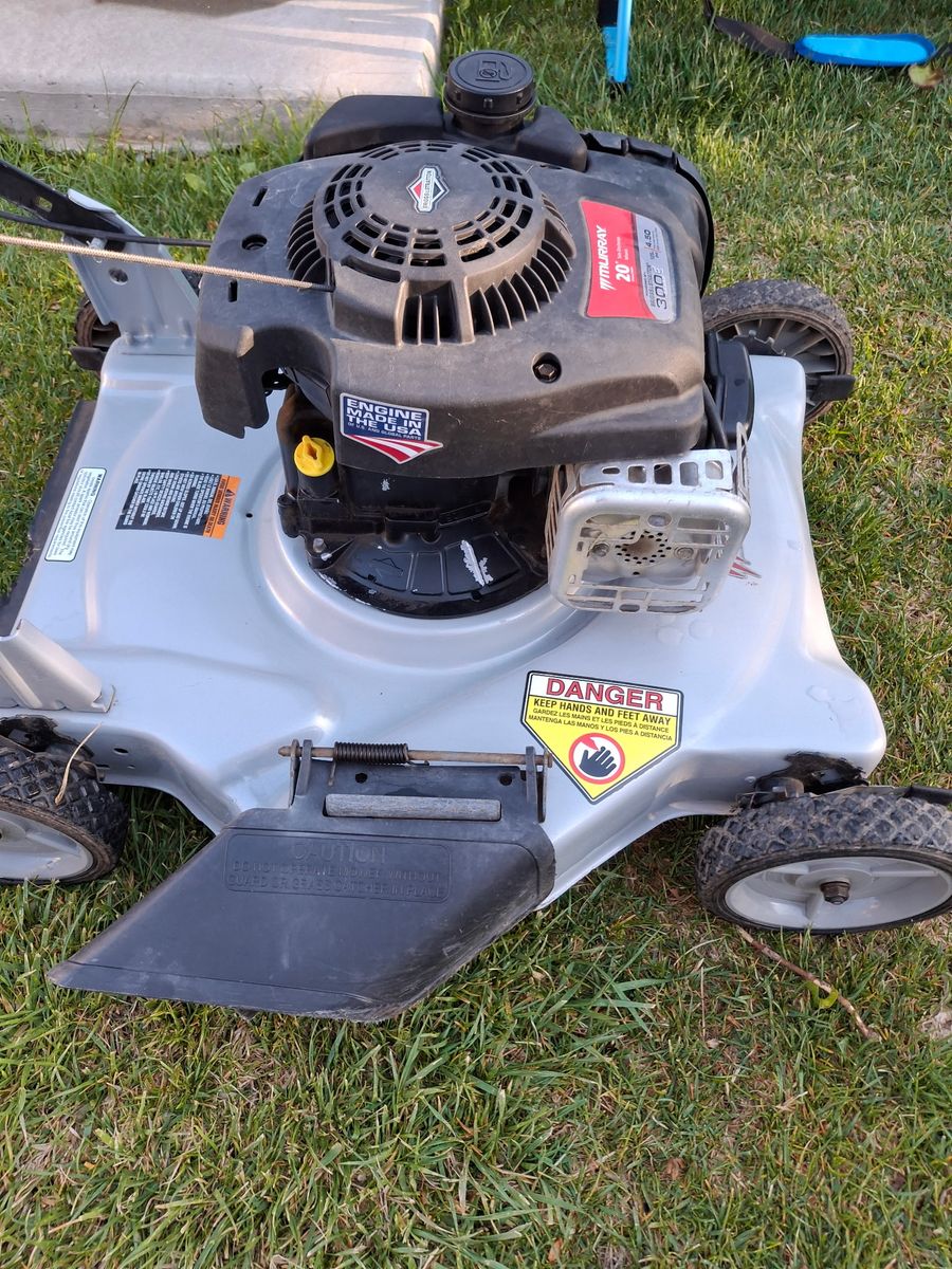 This mower is in Super mint condition 20" murray push mower in fantastic shape fires up first pull every time Super reliable just detailed and serviced last saturday fully cleaned under the engine covers and behind the fuel tank,cut off the string that was around the axels, cleaned the carbuorator, put a fresh airfilter, cleaned fuel tank, cleaned the sparkplug, gave an oil change and regreased all of the wheels and now it is ready to run great for its new owner. Pick up In West Jordan!
