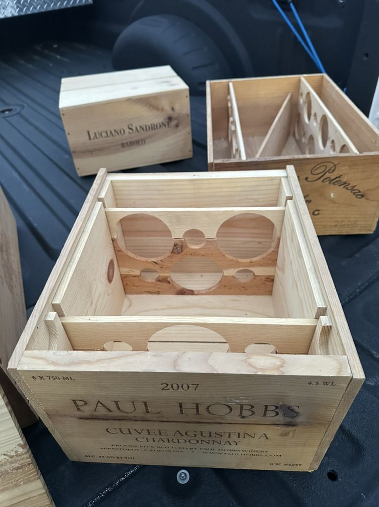EMPTY WINE BOXES. VERY COOL LOOKING. ORIGINAL BOXES USED FOR SHIPPING TO LIQUER STORES. ALL MADE OF REAL WOOD. MUST BUY ALL FOUR.