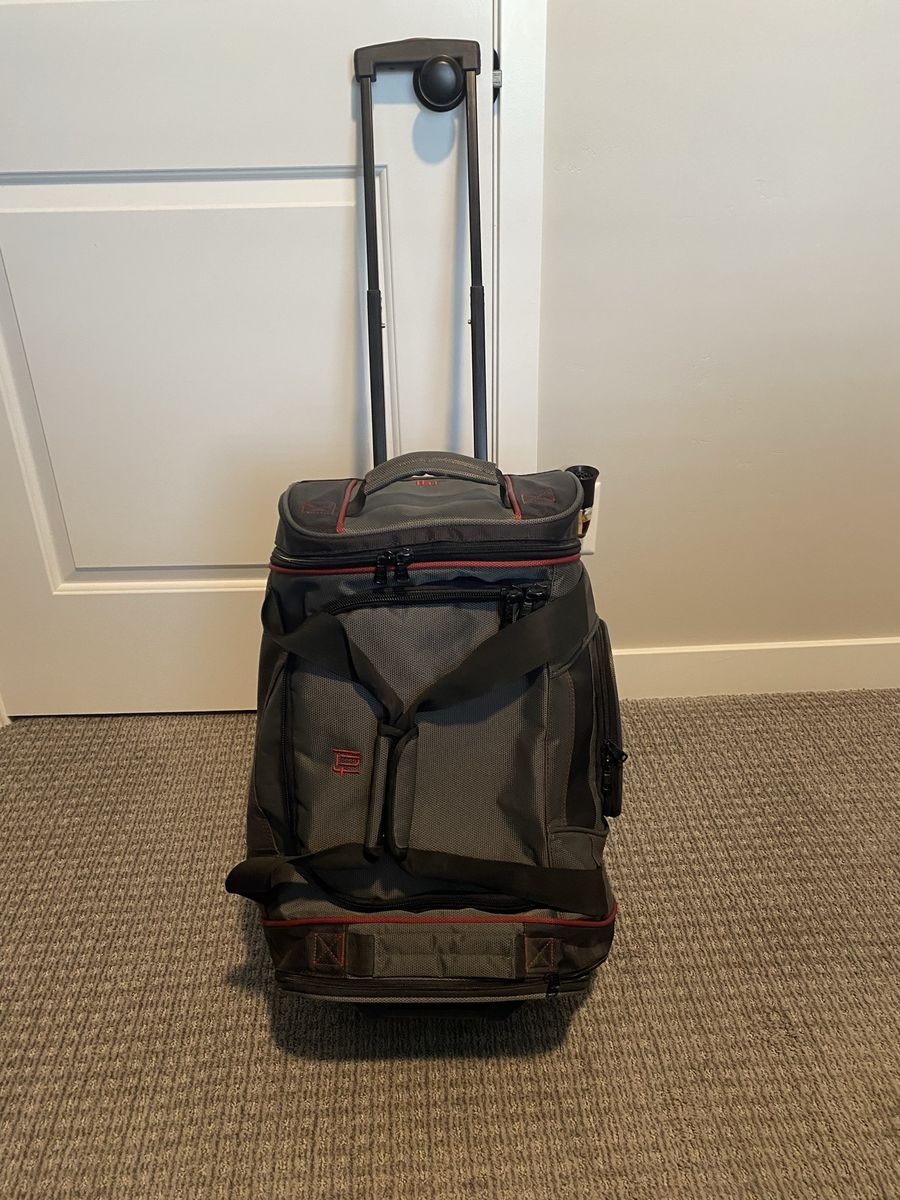 This type of rolling duffel appeals to frequent travelers, athletes, and weekend adventurers who value versatility and ease of transport. The hybrid design allows the bag to be carried, rolled, or checked, making it ideal for various travel scenarios from gym trips to short vacations. Collectors of vintage luggage and travel gear enthusiasts appreciate these bags for their practical design evolution and representation of modern travel culture.