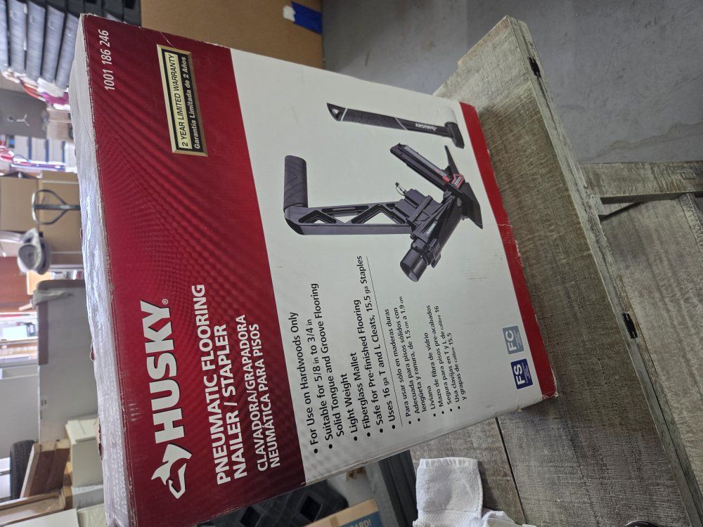 Husky wood floor stapler/nailer. 5/8" to 3/4" Hardwoods Used for one house of install. Works great.