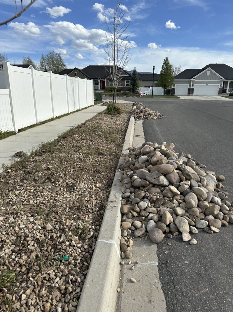 We’re redoing our park strip and getting rid of all our rock. Medium and large sized river stones are piled up on the street. Medium sized gravel is also free for anyone interested. These came from an area of about 90 feet by 6 feet.