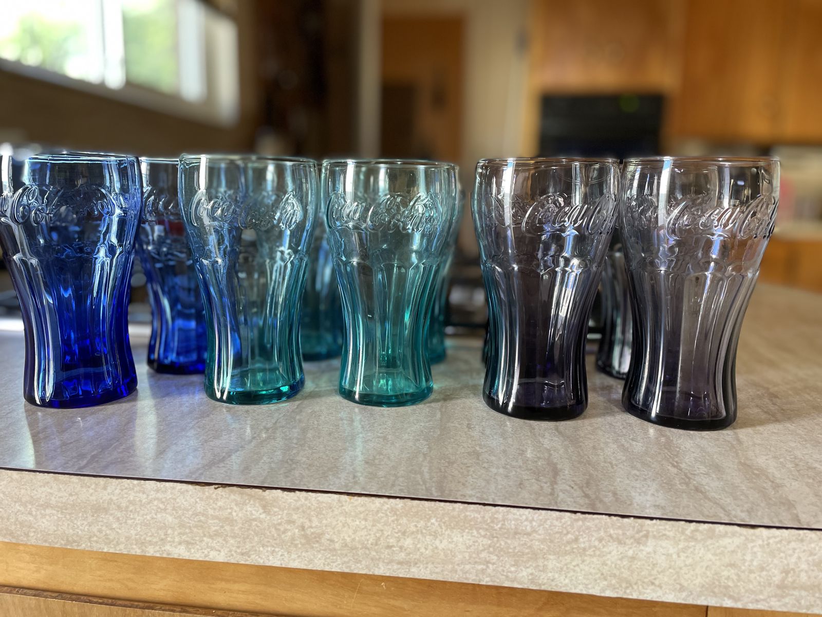13 ounce durable glasses. 3 blue, 4 green and 4 purple. Each for $5.00 or all for $45. Great buy. OBO