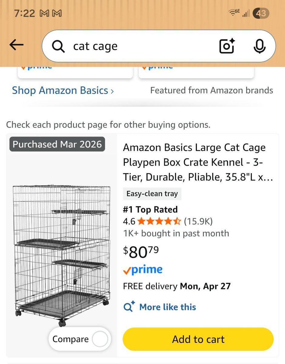 ZelleAs you can see in the Amazon screenshot, we purchased this a month ago for over $80 to house 2 kittens, and we no longer need it. Asking for half of what we paid. It is still in like-new condition.