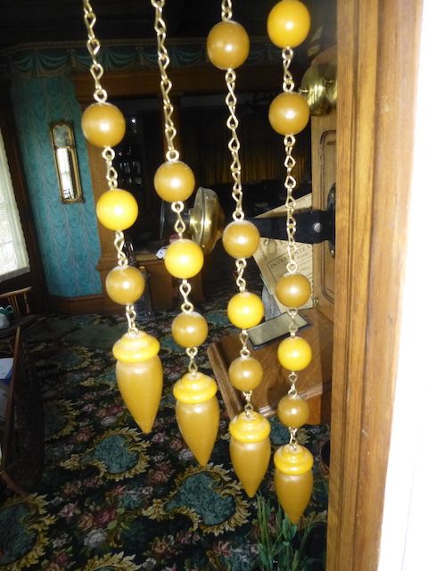 VenmoDoor curtains or portieres as they are also called, were used in homes in doorways between rooms. Practically these hung in doorways to stop drafts, but also they offer a romantic and inviting transition by softening doorways. Most were made of fabric, but also strung beads, tassels, decorative cording, etc. These were popular not only during the Victorian Era, but also the early Arts and Crafts homes. This one hung in a Victorian home above a pocket door, as shown in the pictures. This one is unique because it is made out of wood and chains. This door curtain is 4 feet wide. The tallest part is 33 inches and the shortest part is 9 inches. The center is 13 inches. It comes with the hardware to hang it. This is a reproduction piece. These are very hard to find now and this particular one is just beautiful. Plus it is in excellent condition! Serious inquires only please. Only selling this item, nothing else in the pictures. No Trades. Selling for a parent so the price is firm.