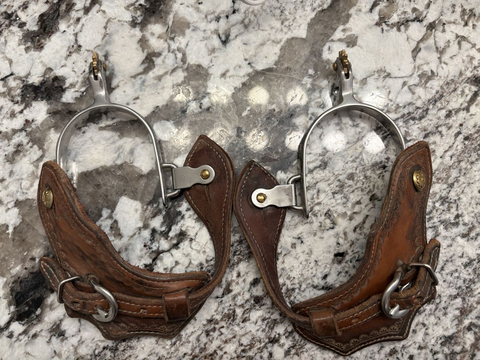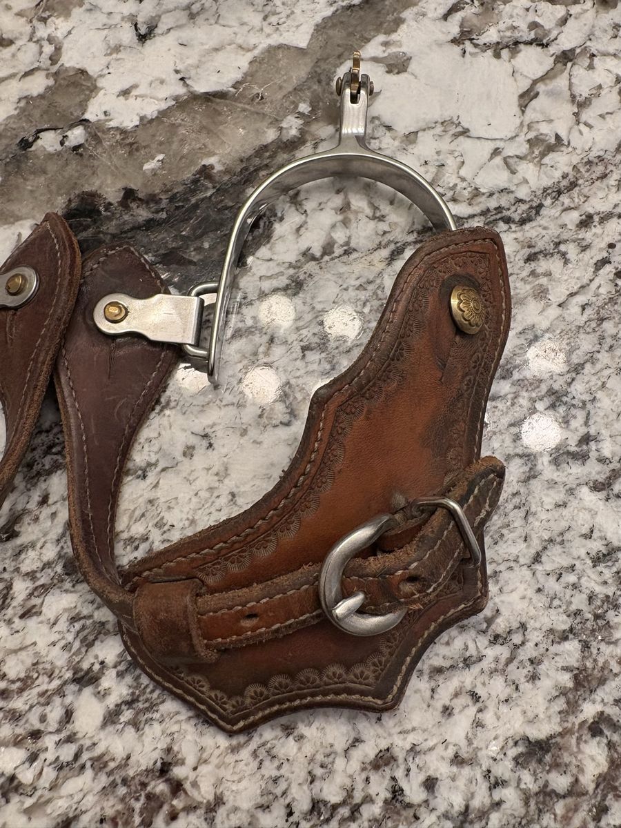 VenmoSpurs and spur straps. I would prefer to sell together, can sell separately though. Spurs are from weaver equine. I only used them once, I have different ones that I prefered. Spur straps are cleaned and conditioned. 1-14” shank $70 obo