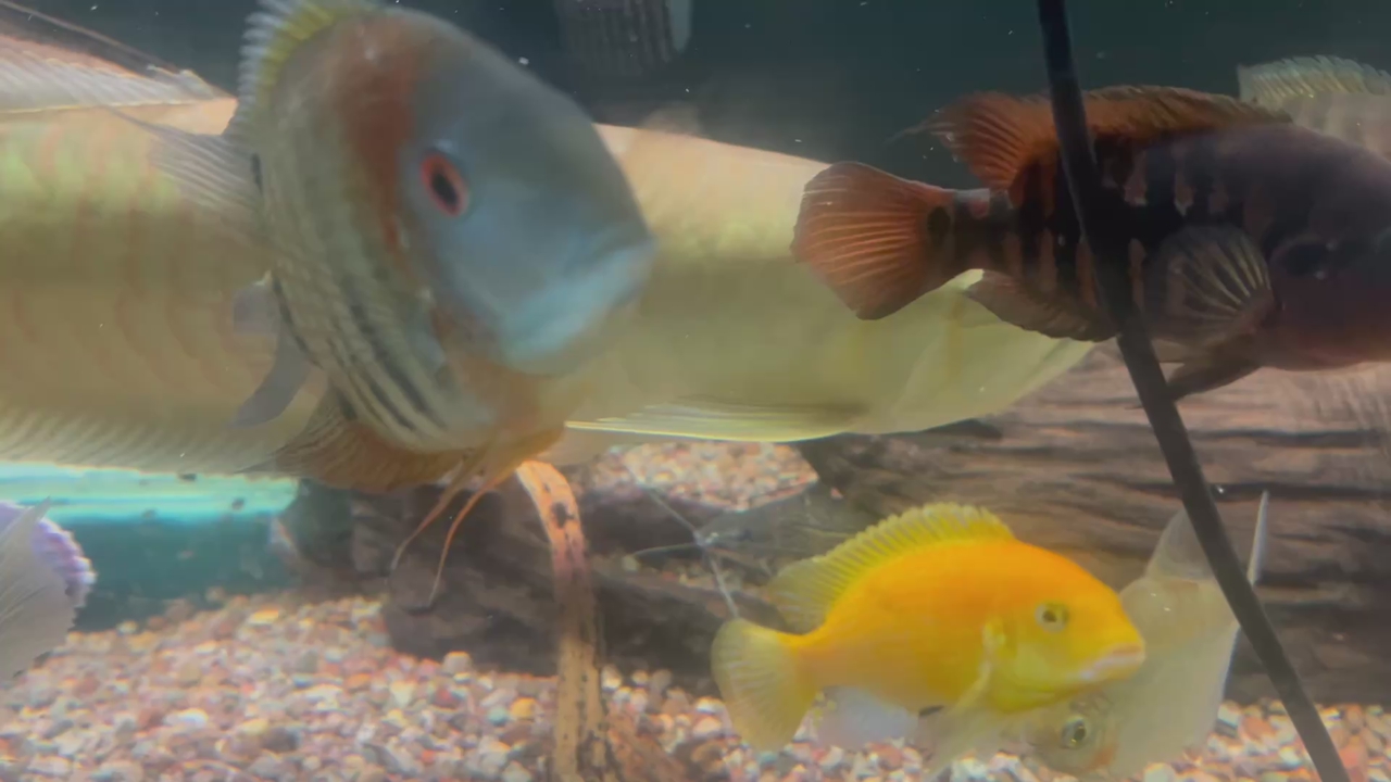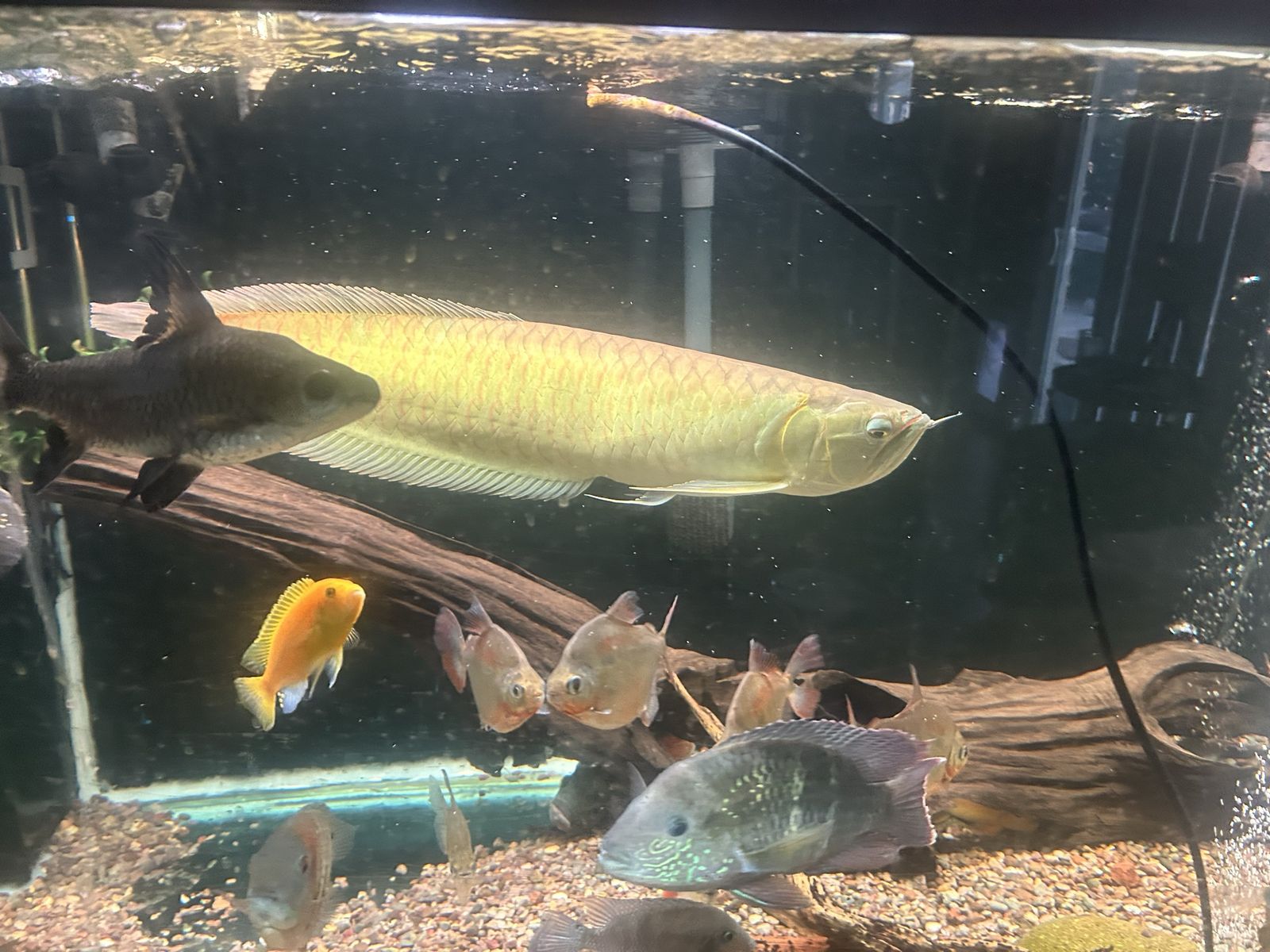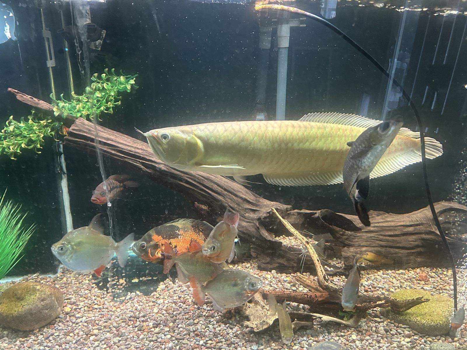 VenmoI’ve had this guy since he was 10 inches. He is in a 360 gallon tank. He eats frozen minnows and pellets. He has drop eye in one eye.