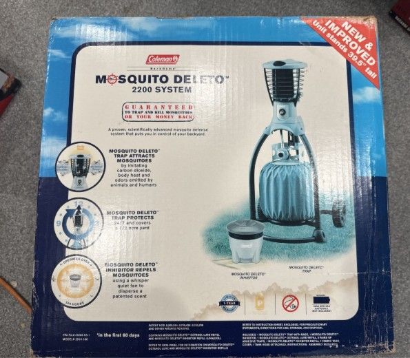 The Mosquito Deleto heat, carbon dioxide and a special mosquito attractant called Octenol. The Mosquito Deleto patented scent that inhibits mosquitoes' ability to detect humans.
