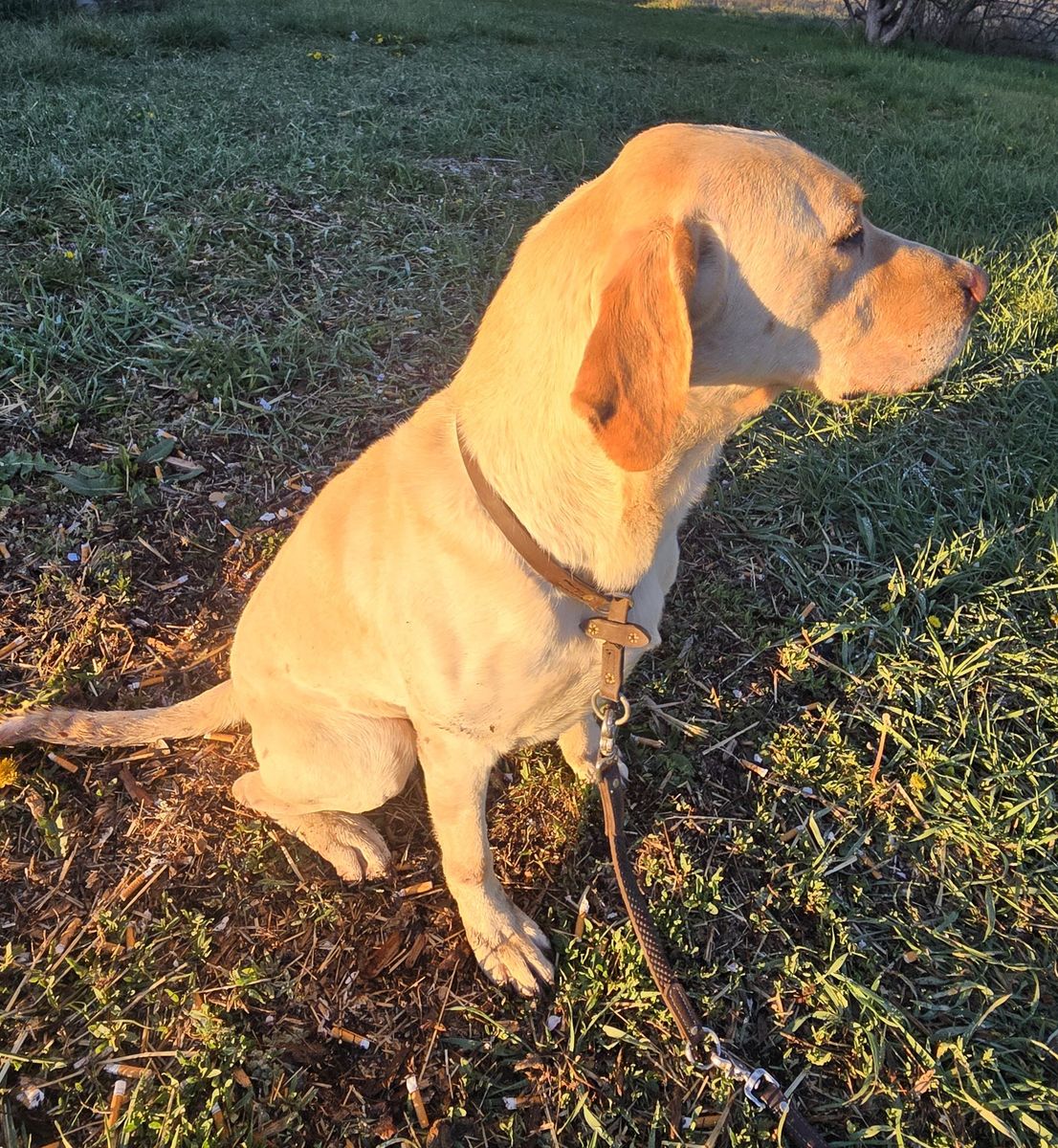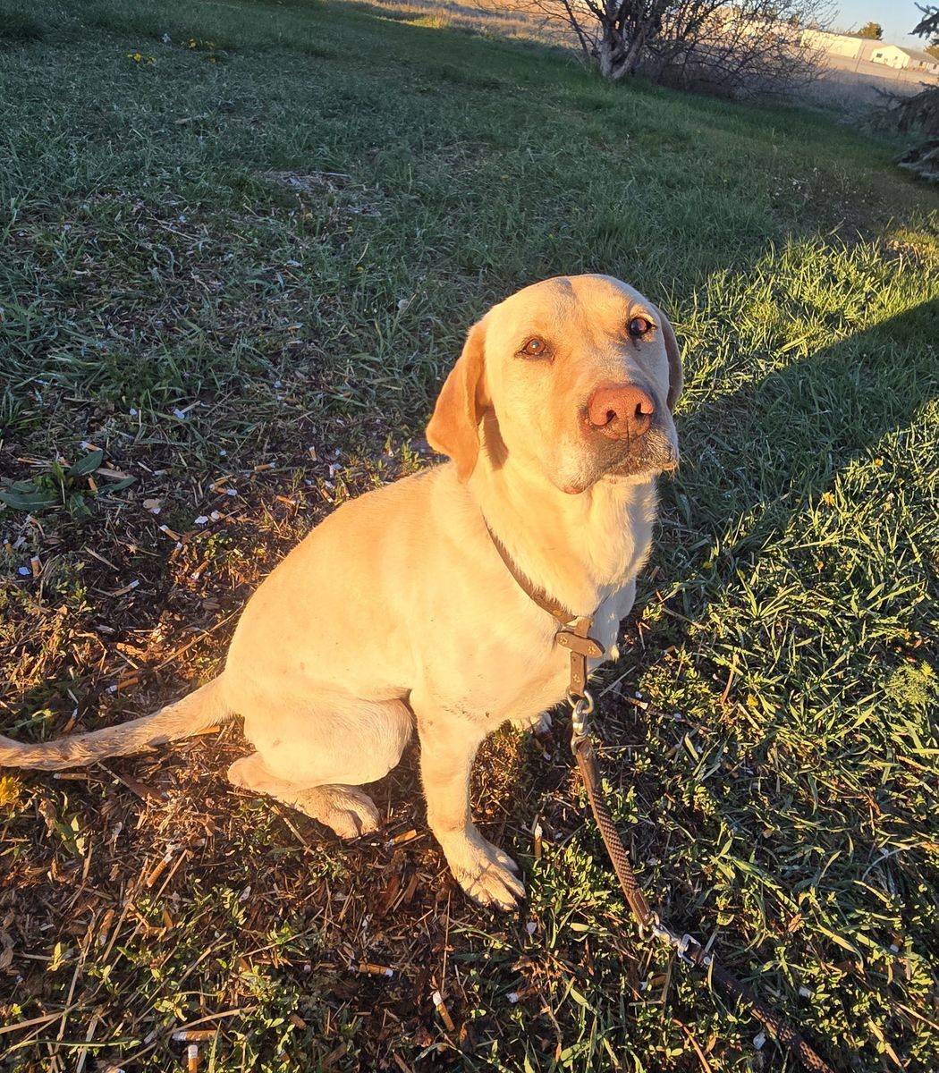 5 year old AKC male labrador retriever. He will be 6 in August. He has a ton of energy with a strong retrieve drive. He knows sit and here and has been crate trained. His first owner treat trained him so he has a high food drive. The reason I am rehoming him is that he does not play nicely with cats or chickens. I have both. He is good with kids and really is a fun dog. He would make a good duck dog for someone who can give him the attention that he needs. He is not neutered and will come with his AKC registration.