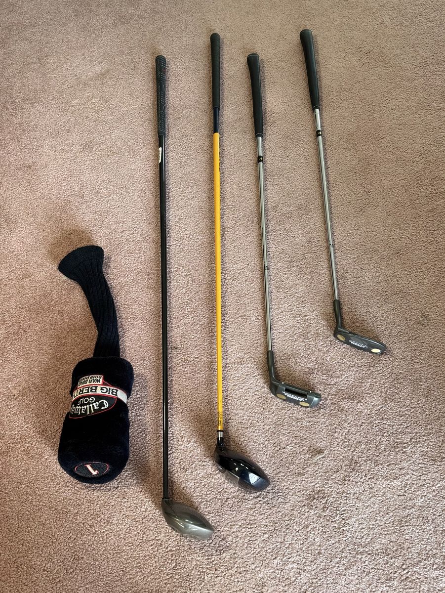 ApplePayClearing out the garage for a home sale. This is a massive, ready-to-play "mega-set" perfect for a beginner or someone looking for a solid upgrade. Includes high-quality name brands and specialty clubs. What’s included: • Irons: King Cobra Oversize (full set), Spalding Cannon, and Daiwa Hi-Trac. • Drivers/Woods: Callaway Big Bertha War Bird, TaylorMade Burner (Bubble Shaft), and Acer XDS Titanium. • Specialty/Short Game: Ray Cook Classic Chipper and Putter. • Bag: TaylorMade Stand Bag with dual straps (all zippers work). Price: $185 or best offer. Must go soon. Great value for the amount of name-brand gear included. Cash or Venmo preferred. Pickup in Gilmer Park area. Thanks***George
