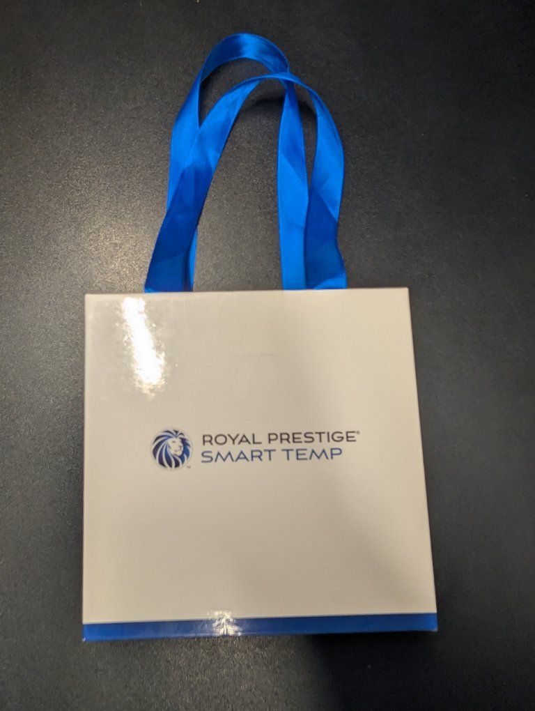 ZelleCondition: Brand New in Original Box Elevate your waterless cooking with the Royal Prestige Smart Temp. This precision surface thermometer is designed to eliminate guesswork, ensuring your 5-Ply or Novel surgical stainless steel cookware reaches the exact temperature for optimal nutrient preservation and "greaseless" searing. Key Features: Intuitive Color Indicators: The rotating needle moves through three zones: Blue: Preheating / Needs more heat. Green (Lion Logo): Optimal cooking temperature reached. Red: Overheating—alerting you to lower the heat immediately to protect your cookware. Heat-Resistant Silicone Grip: Designed for safe, easy removal from hot surfaces once the target temperature is reached. Precision Engineering: Specifically calibrated for Royal Prestige stainless steel cooking systems.