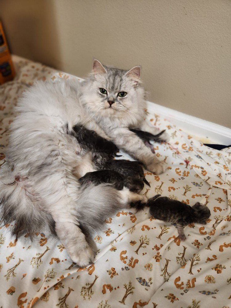 ZelleLilac/Chinchilla Silver Persian babies! 3 boys and 1 girl. 12 weeks and ready for their new homes. All are very soft and so sweet. 3 have a long hair coat and 1 boy has a fluffy medium length coat! My kittens are lovingly raised as members of my family in a clean home. They are handled with gentleness and love from birth. Babies are kept with their mothers until 12 weeks until they can be sent to their new homes with an adoption package. Please inquire about a discount if you are interested in adopting more than one kitten.