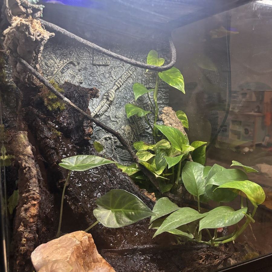 ApplePayAdult Female Amazon Milk Frog. We’ve had this cute girl for about two years. Raised her from a baby and made the enclosure ourselves. Has live plants, isopods, and springtails. There is a waterfall pump in there but it seems to have stopped working but I’m sure it’s an easy fix. Also comes with cricket cage, large mister, and a bag of extra moss.
