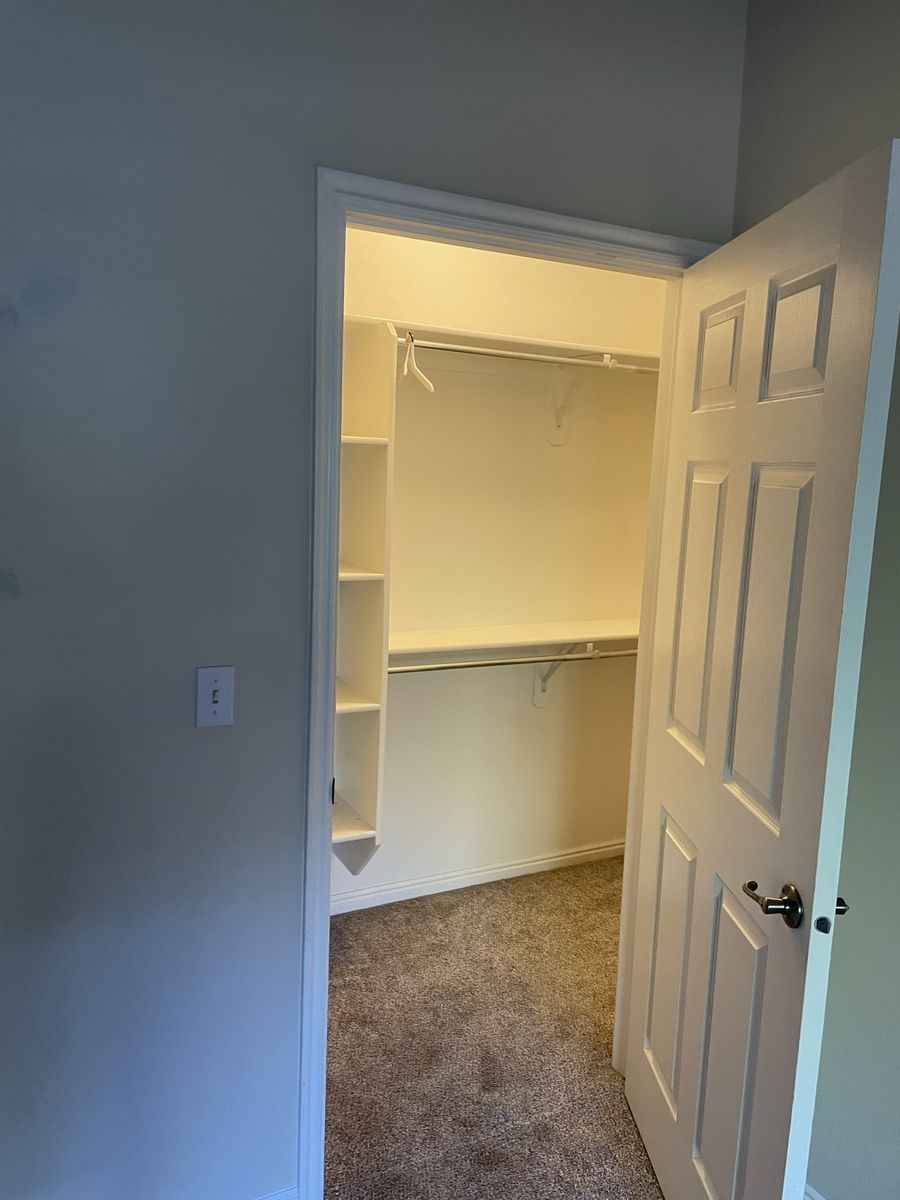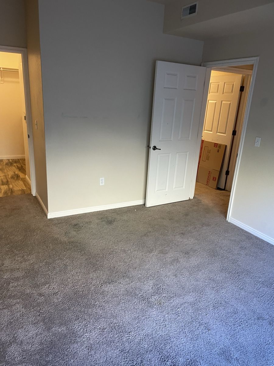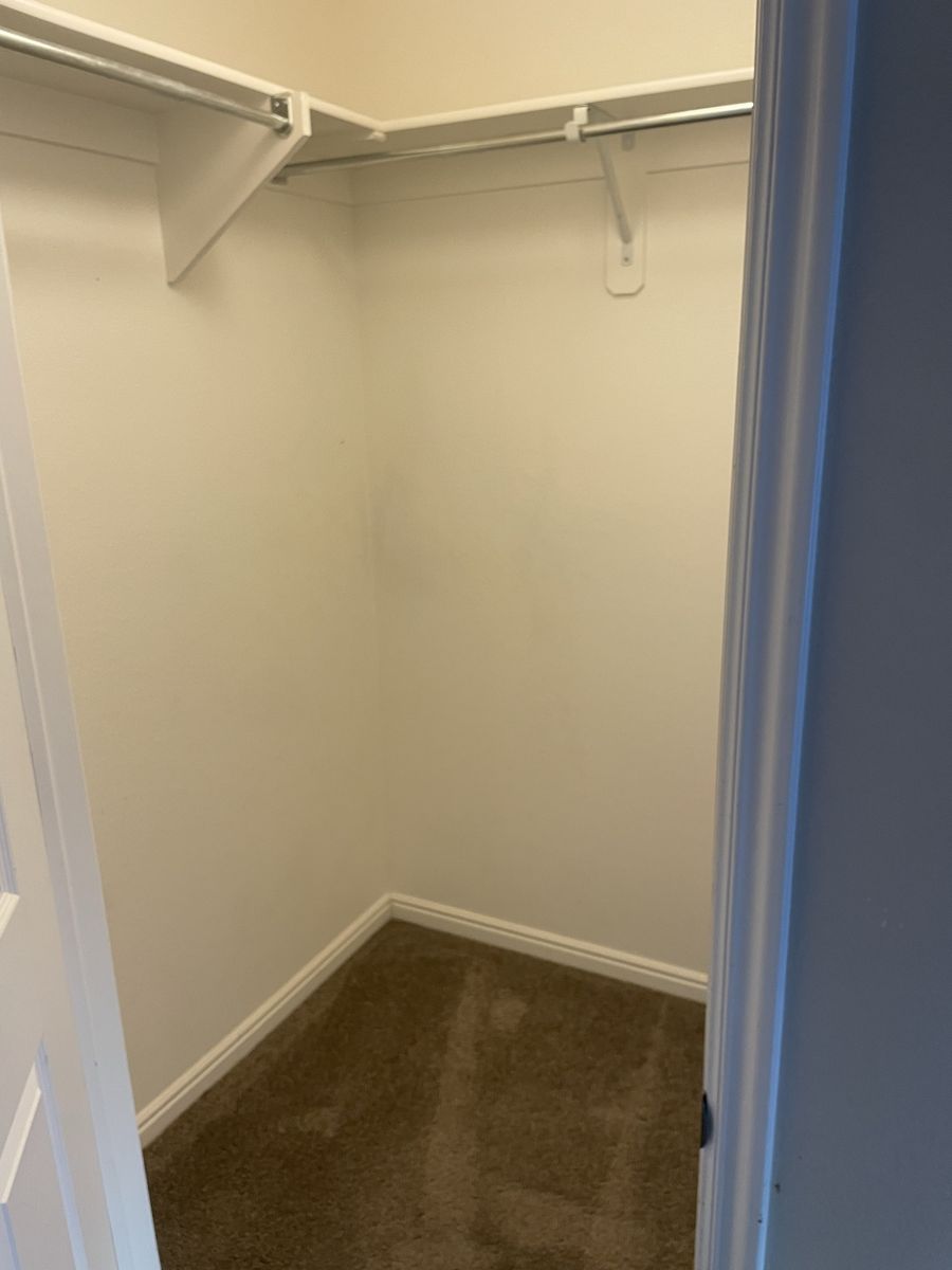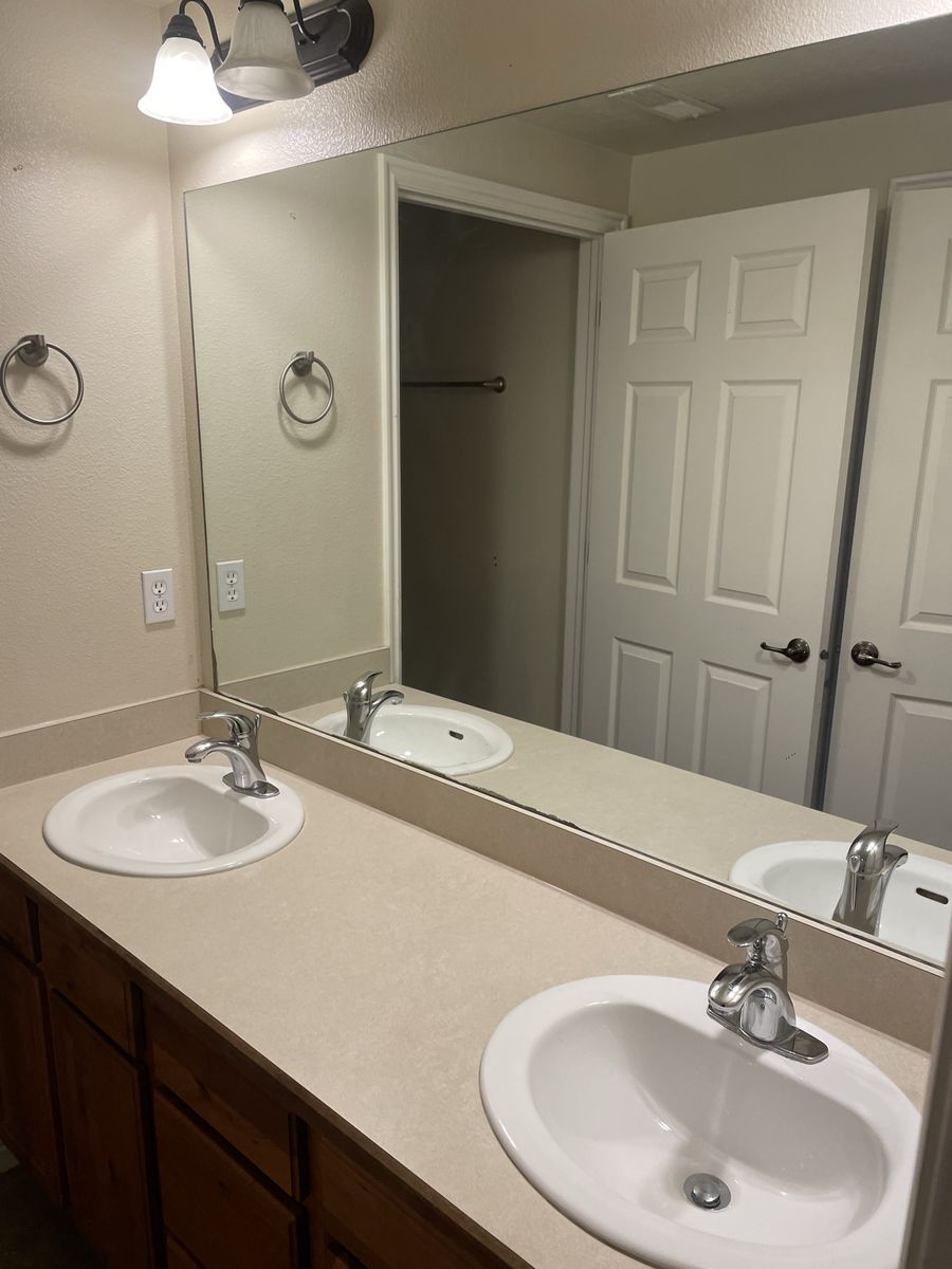 The master bedroom can easily fit a king size bed and has a wrap around closet with plenty of space! There is a master bathroom attached with double sinks and a very deep and very wide bathtub (easily my favorite part of living here)!