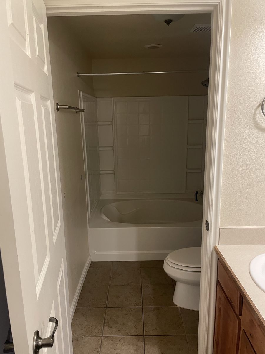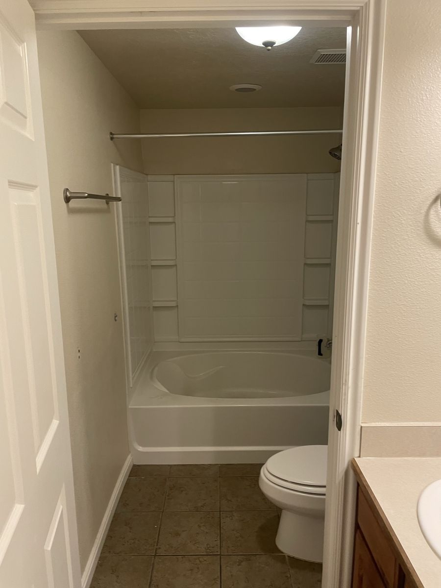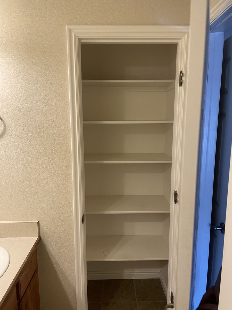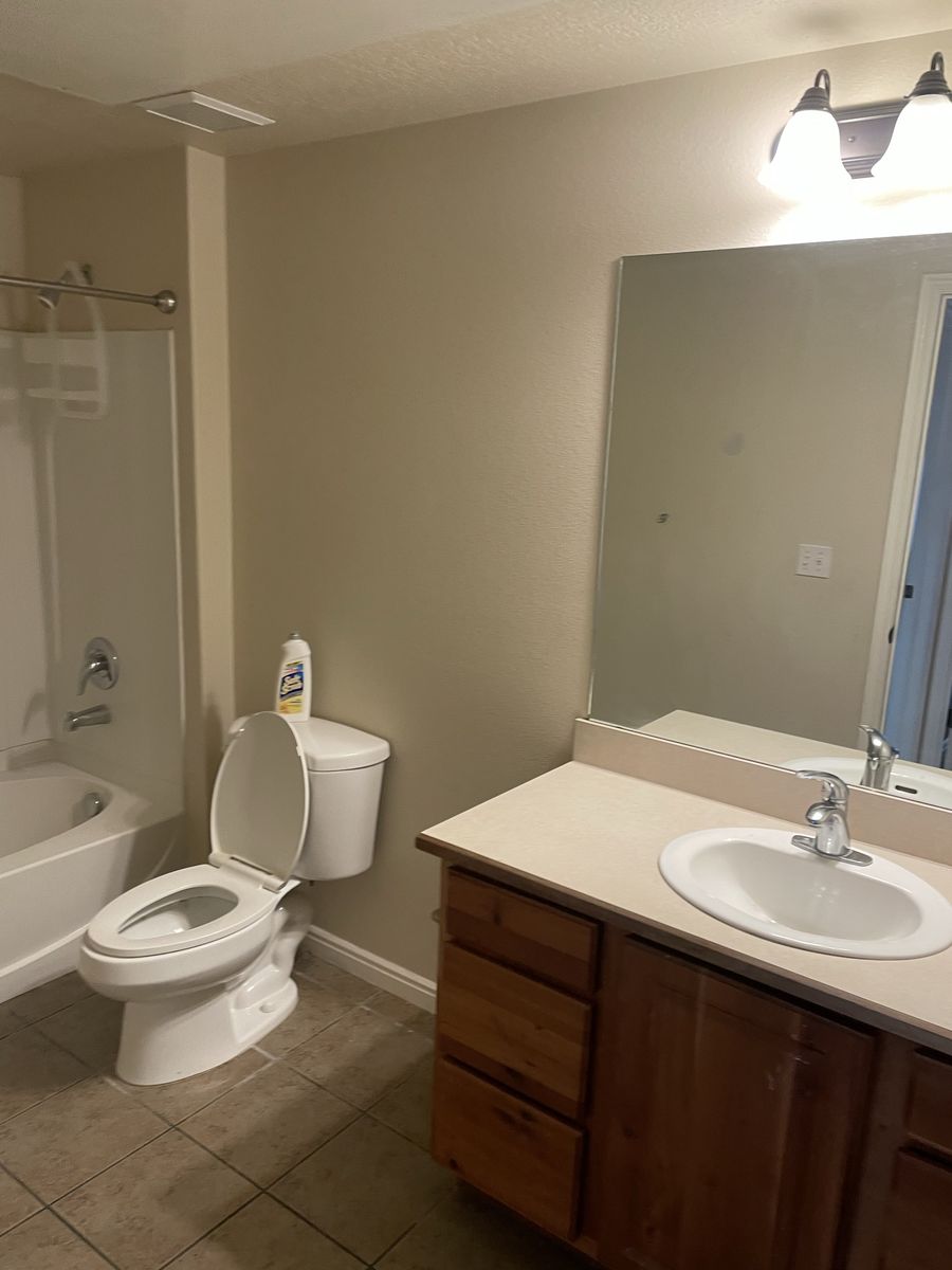 The master bedroom can easily fit a king size bed and has a wrap around closet with plenty of space! There is a master bathroom attached with double sinks and a very deep and very wide bathtub (easily my favorite part of living here)!