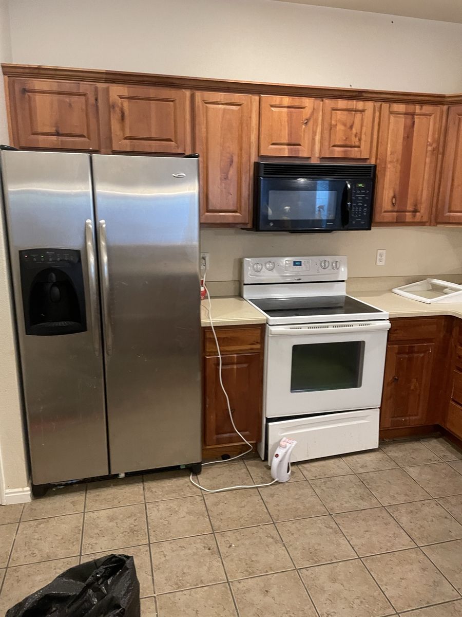 The kitchen is absolutely gorgeous with a dishwasher, refrigerator, and electric stove/oven.