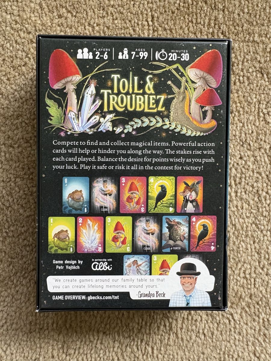 COMPLETE Toil & Troublez game: Find the magic, if you dare! Grandpa Beck’s Games, 2023. Ages 7+, 2-6 players. Complete, no missing pieces. Excellent condition. Text only. Cash or Venmo. Discount on multiple items.