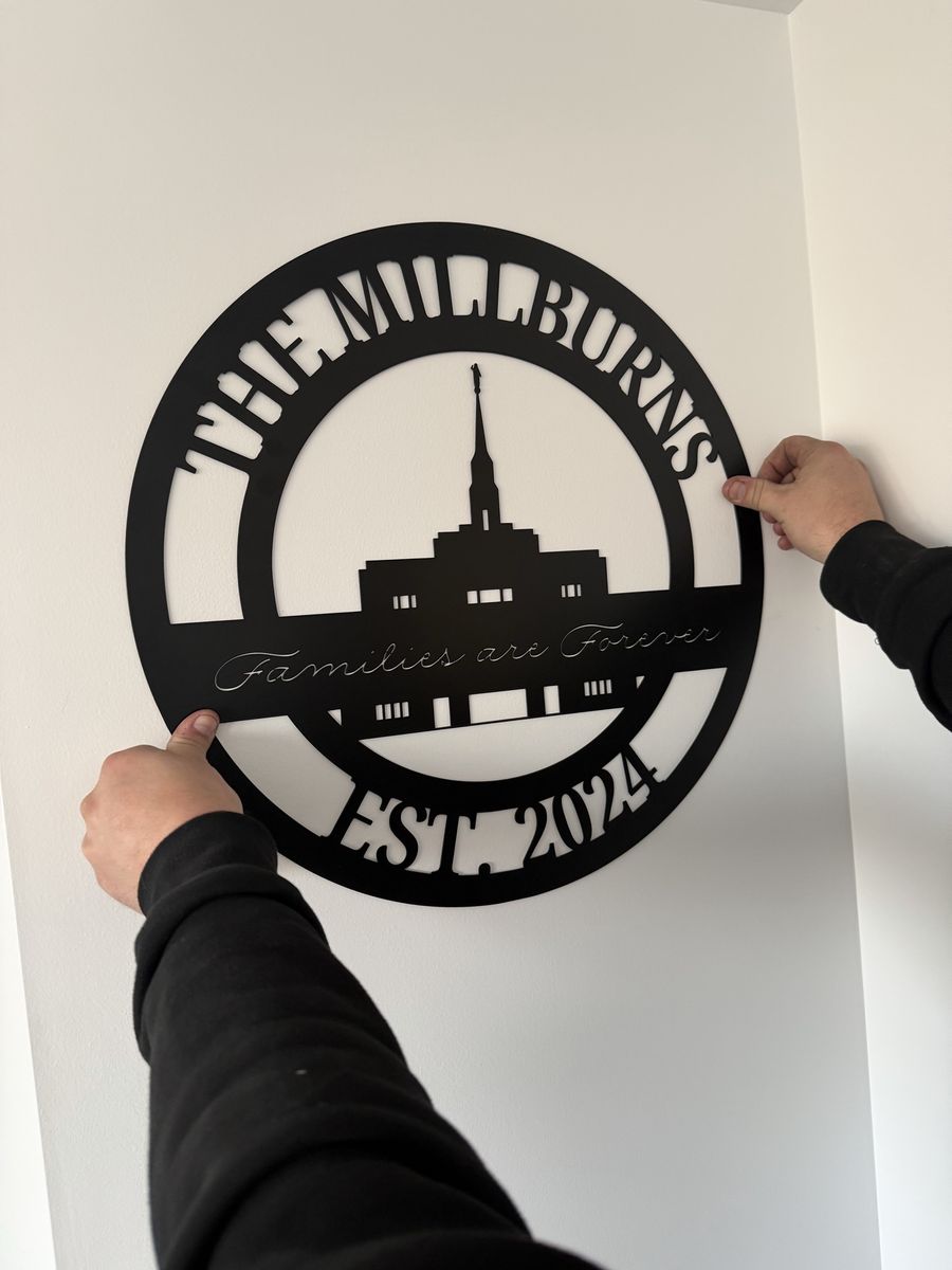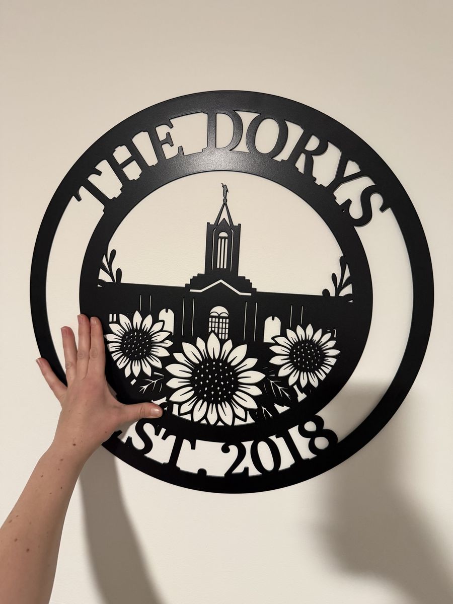 Great gift for Mother’s Day! Available in black or white and powder coated so it won’t rust. Starting at $75 for 20”. Reach out for pricing on anything larger and customizations beyond names, dates, and temple designs.