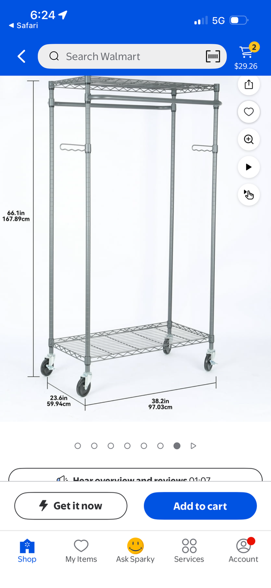 CashAppGarment Rack - purchased at Walmart- reg. price $107- like new (no box) - Black with chrome clothes rack