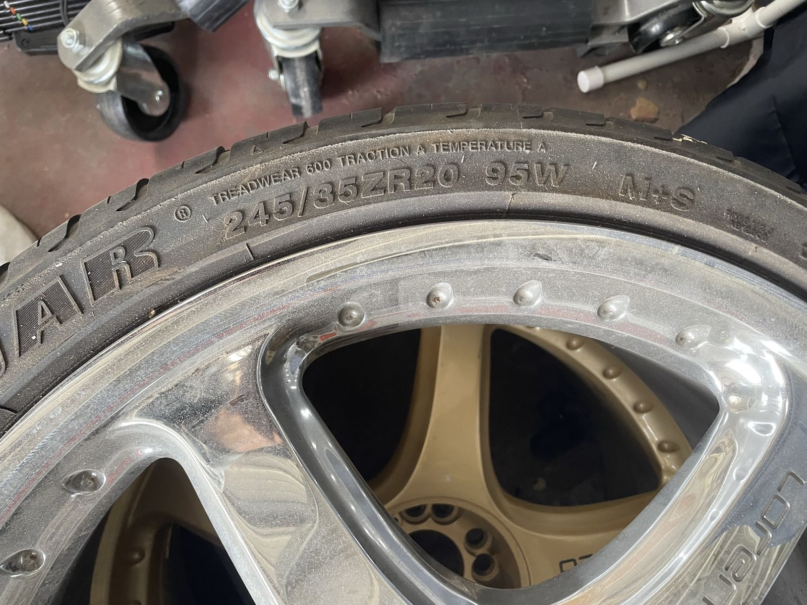 Two tires and rims. I got an extra set but don’t have the car anymore. They are Lorenzo rims. The tires are great condition. Would be great for extra set