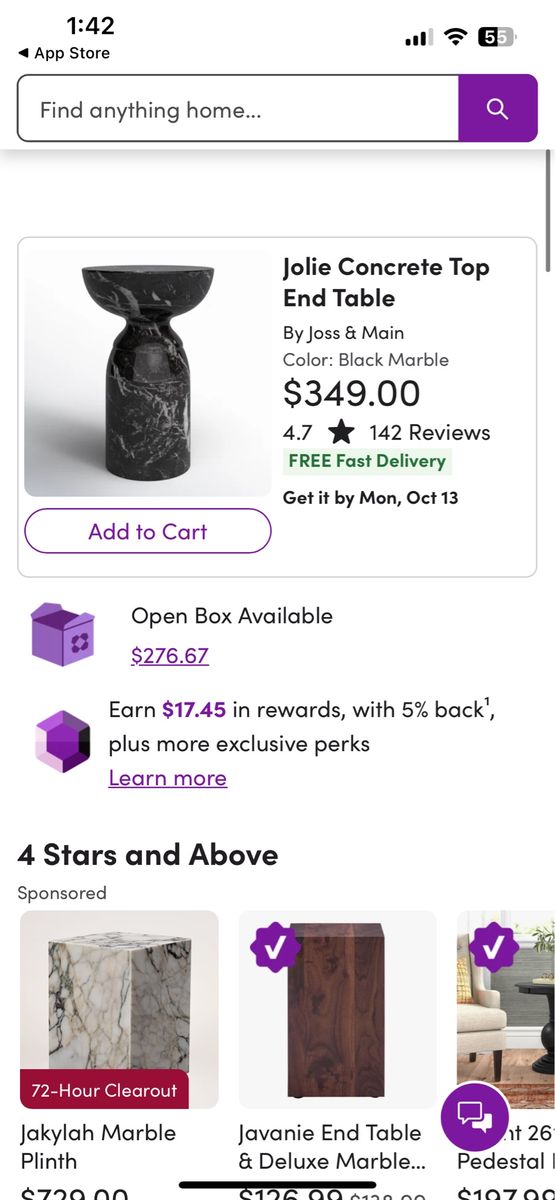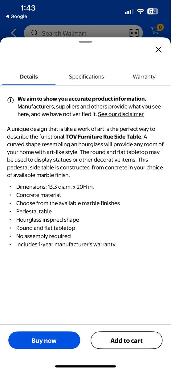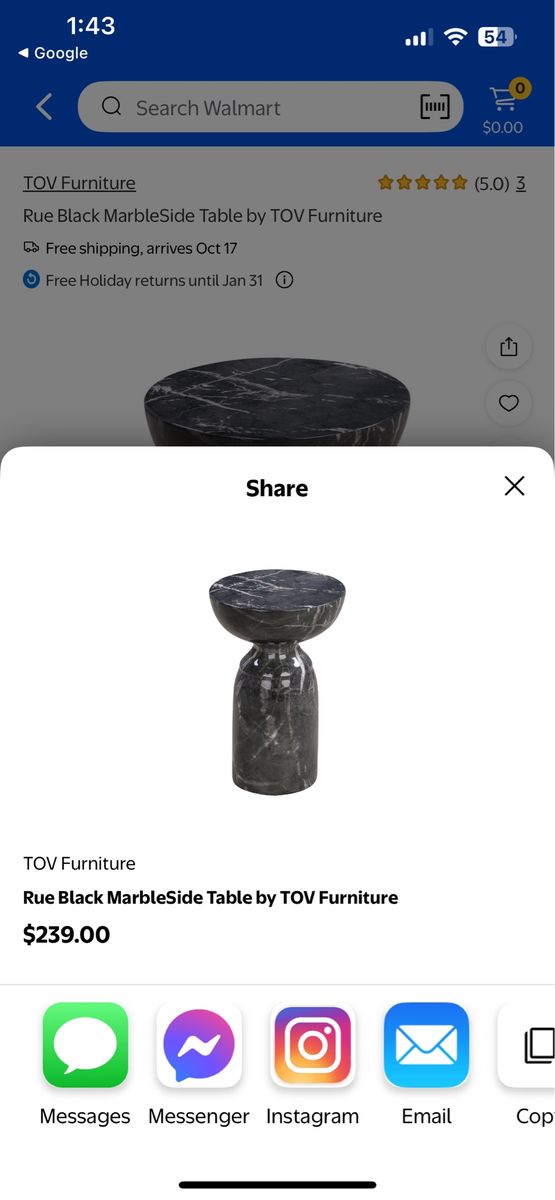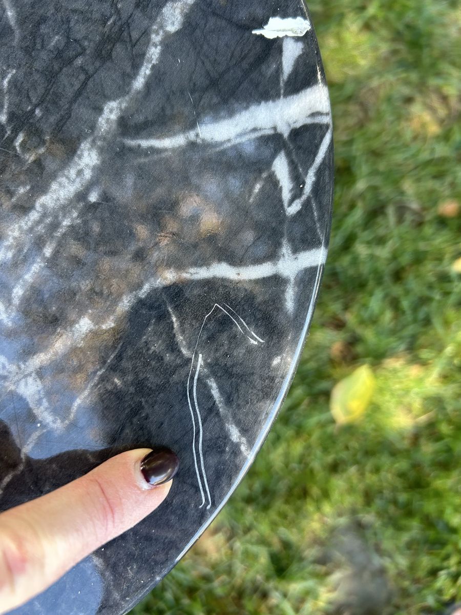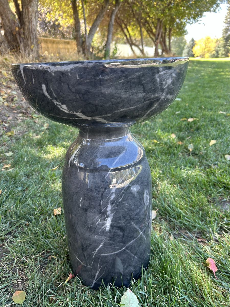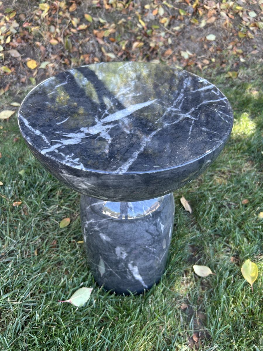 VenmoIn like new condition black marble side table by TOV furniture. Top measures 13” in diameter, base measures almost 9” and has felt pads, and it’s 20” tall. Minor wear. Could easily be touched up if you desire. Clean smoke free. Heavy. Cash or Venmo. Located in and picked up from Alpine.