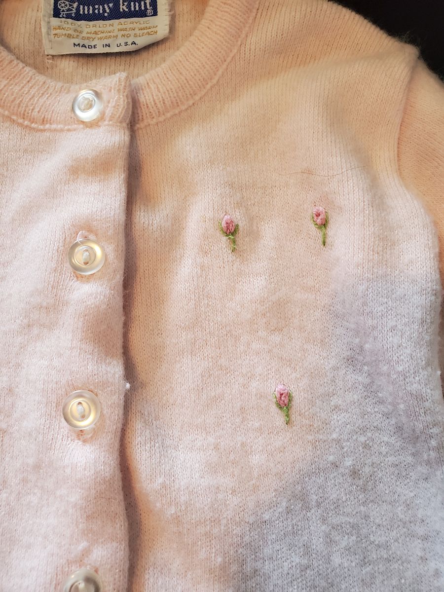 VenmoSo cute! Baby girl, Vintage sweater. It's a light pink, with pink roses. Very soft, no stains, rips or runs in the sweater. In good condition. size 3M - 6M. Clean and smoke-free home. Call or text 801-580-6017