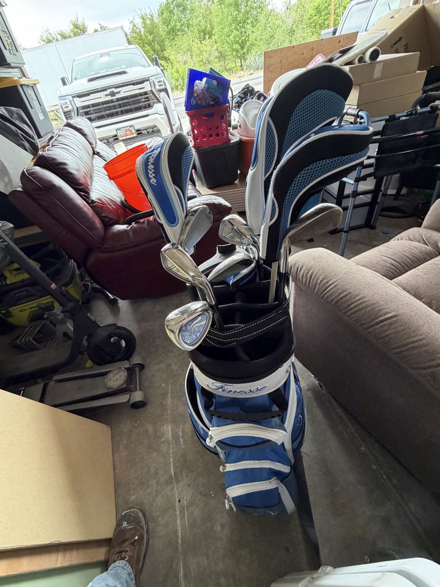 Complete set of Finesse golf clubs, bag and a golf push cart. Bag contains everything you need to start golfing today! Golf clubs were used only a handful of times. $500 obo