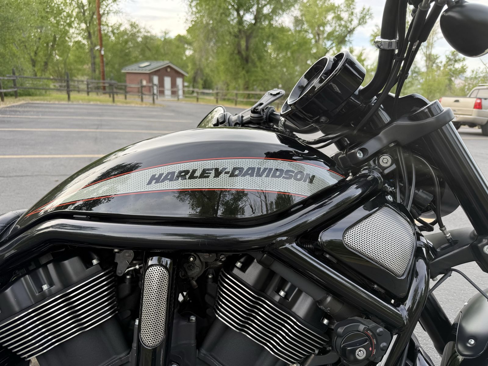 Zelle2015 Harley VRSCDX V-Rod Night Rod. This is a beautiful fun bike. It is very comfortable and fast for a road bike. The Porsche 1250cc engine is very smooth and reliable. I have a quick release detachable windshield that will forth the bike and a Harley bike cover.