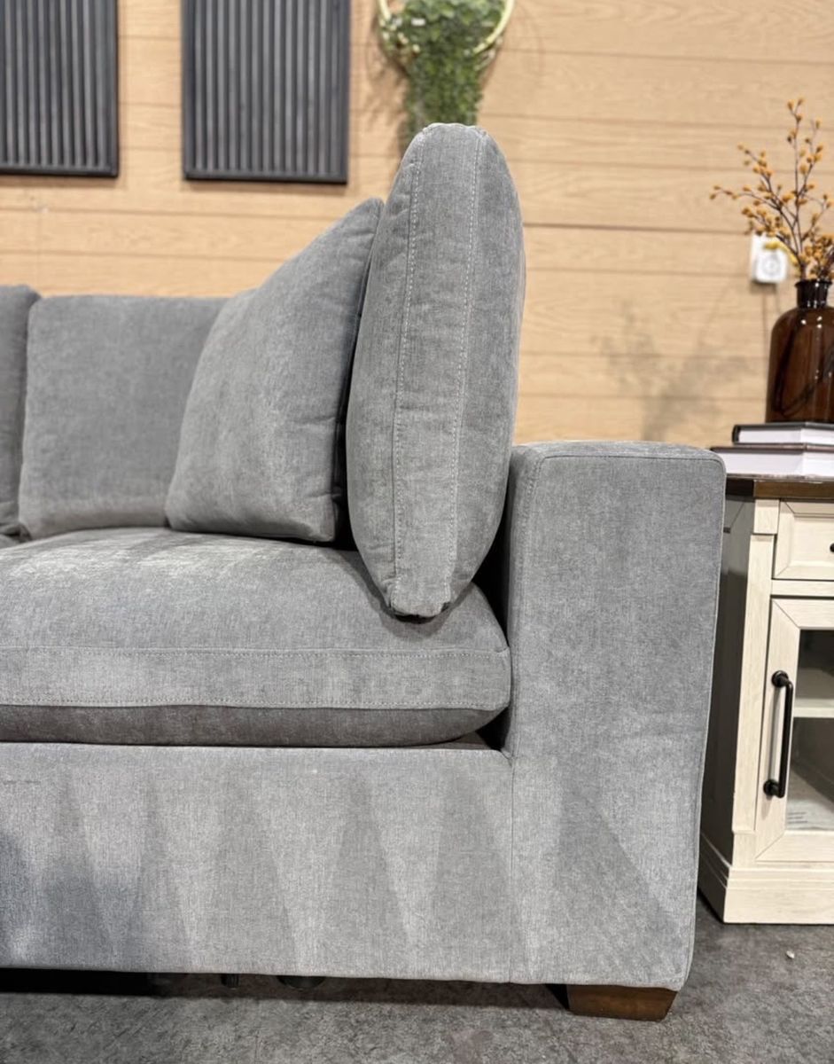 Features: Modular Pieces can be Arranged in Multiple Configurations Reversible Back and Seat Cushions Modern Wide Track Arm Design Blocked-Shaped, Solid Wood Legs Includes 3 Accent Pillows