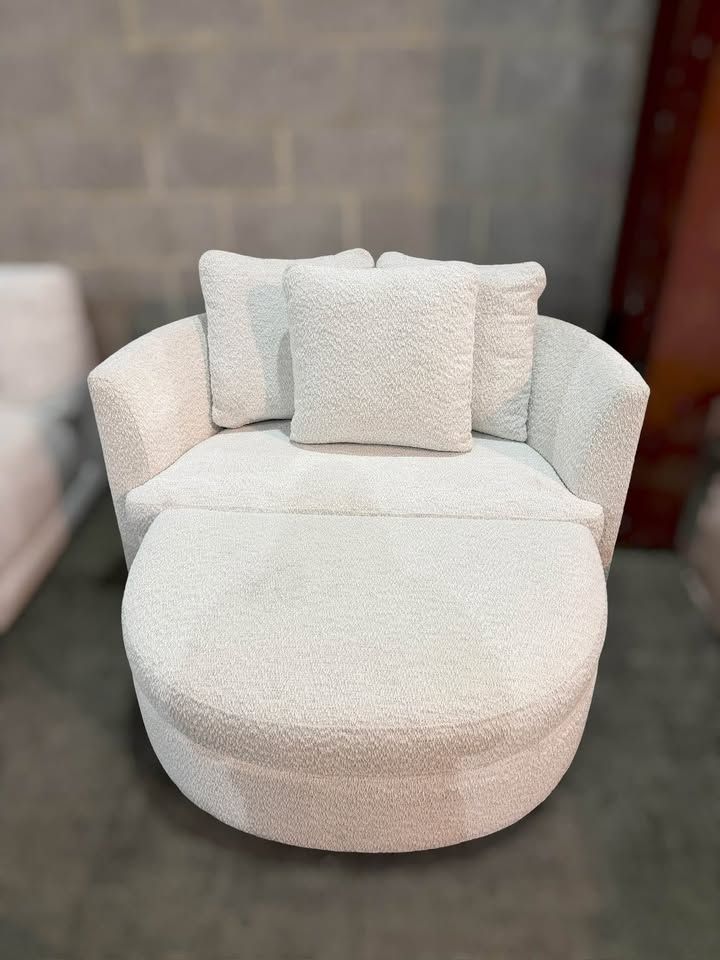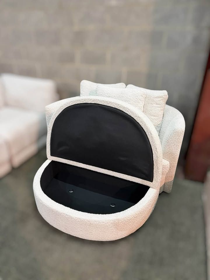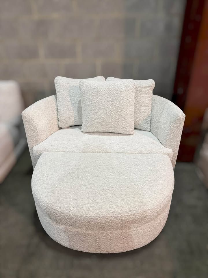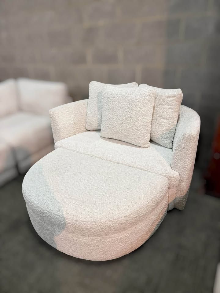 ️ Oversized cozy accent chair Hidden storage ottoman included Soft fabric with a clean, modern look