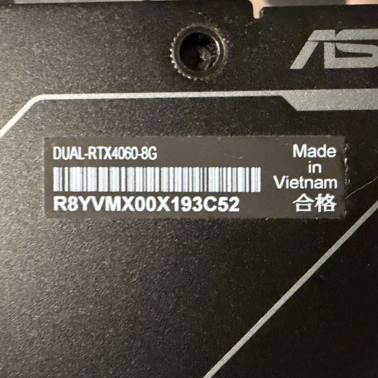 ApplePaySelling a used ASUS Dual GeForce RTX 4060 OC Edition 8GB GPU. Used for a little over one year for general PC gaming. Selling since I upgraded my GPU. Link for stats https://www.asus.com/us/motherboards-components/graphics-cards/dual/dual-rtx4060-o8g/