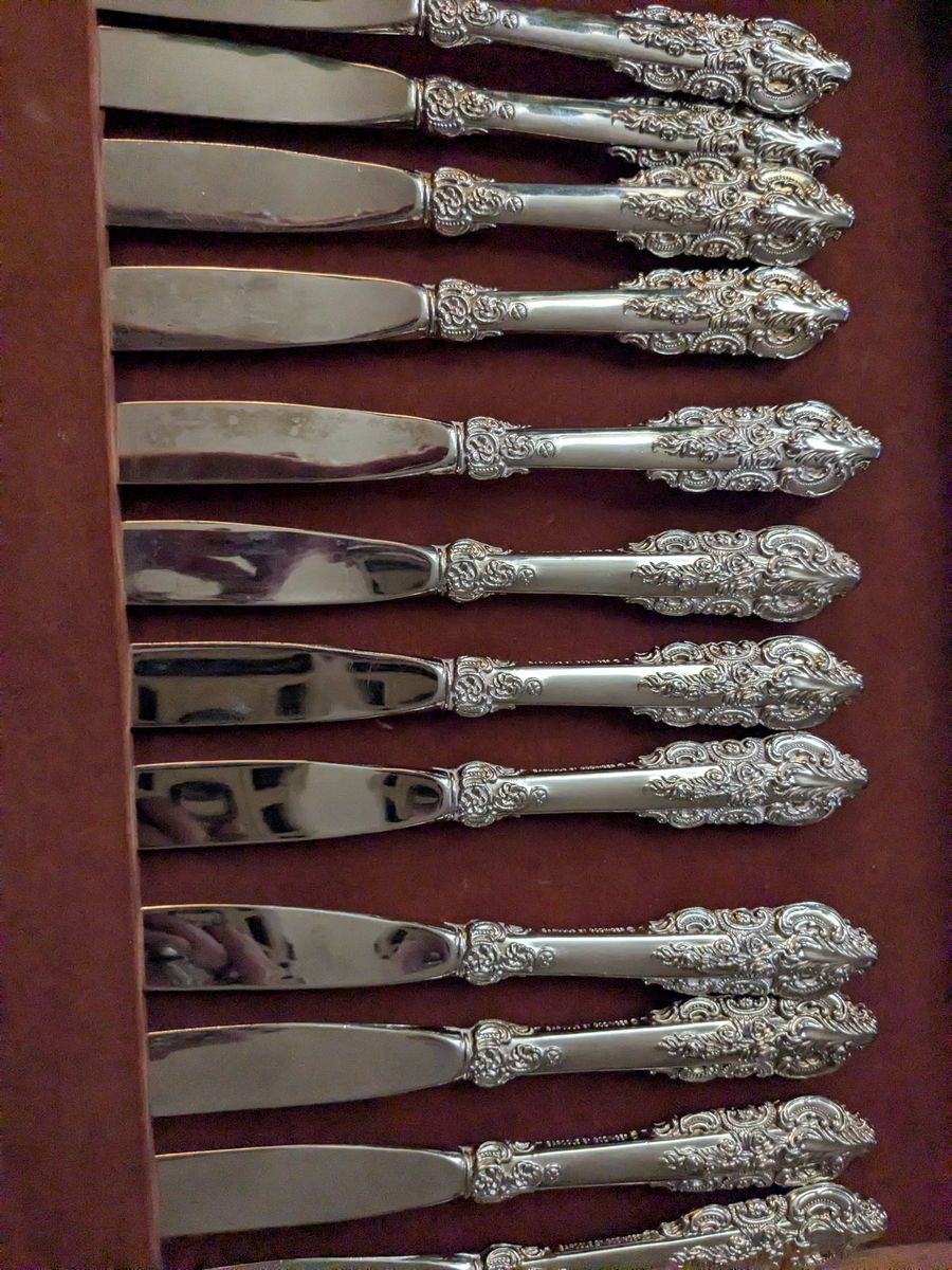 12 place setting Antique Baroque by Godinger sterling silver silverware set. Exquisite luxury design plated with authentic sterling silver