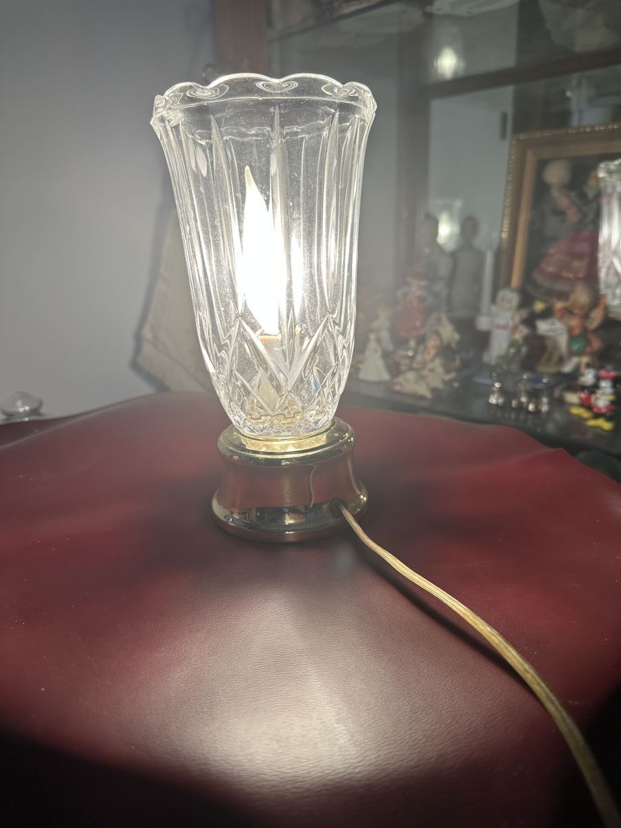 VenmoStep into the glamour of mid-century glam with this exquisite Style Brite Roxmor torch lamp, a true vintage accent light that elevates any space. Crafted from heavy lead crystal glass and perched on a brass pedestal base, this elegant living room or bedside table light dazzles with a warm, inviting glow. Inspired by Hollywood Regency style, it brings timeless sophistication and sparkle to eclectic and luxe-inspired décor alike.