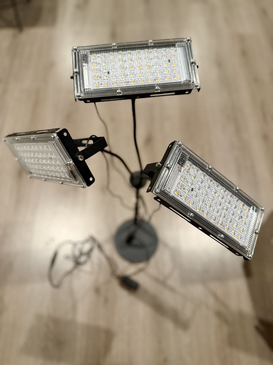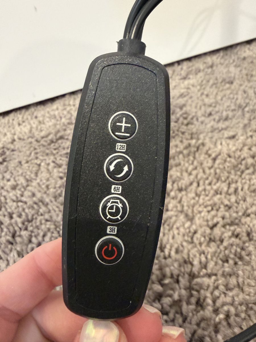 ZelleSelling a like-new 3-head LED plant grow light with black and silver adjustable stand, 30" tall. Auto timer option on remote. No visible damage; works perfectly as seen in image. Comes with power adapter and controller attached to cord.