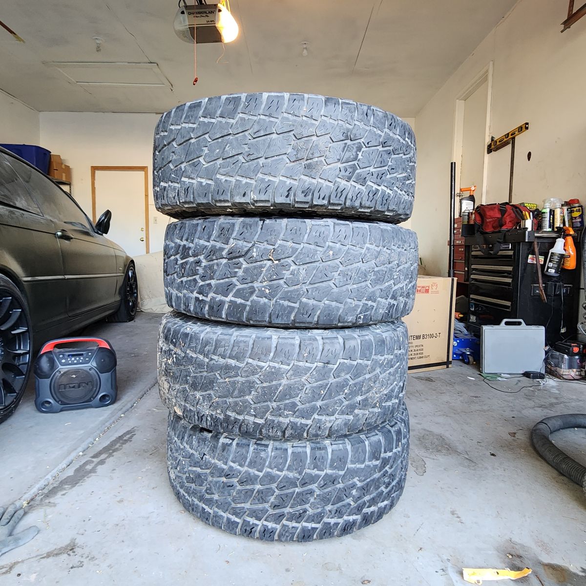 Set of good wheels that I don't need. No cracks or bends. Tires have decent life on them. Able to run no issue