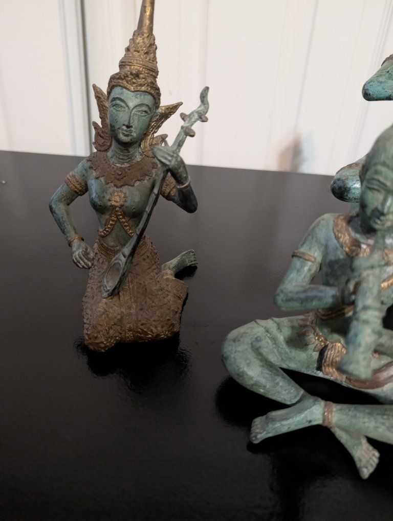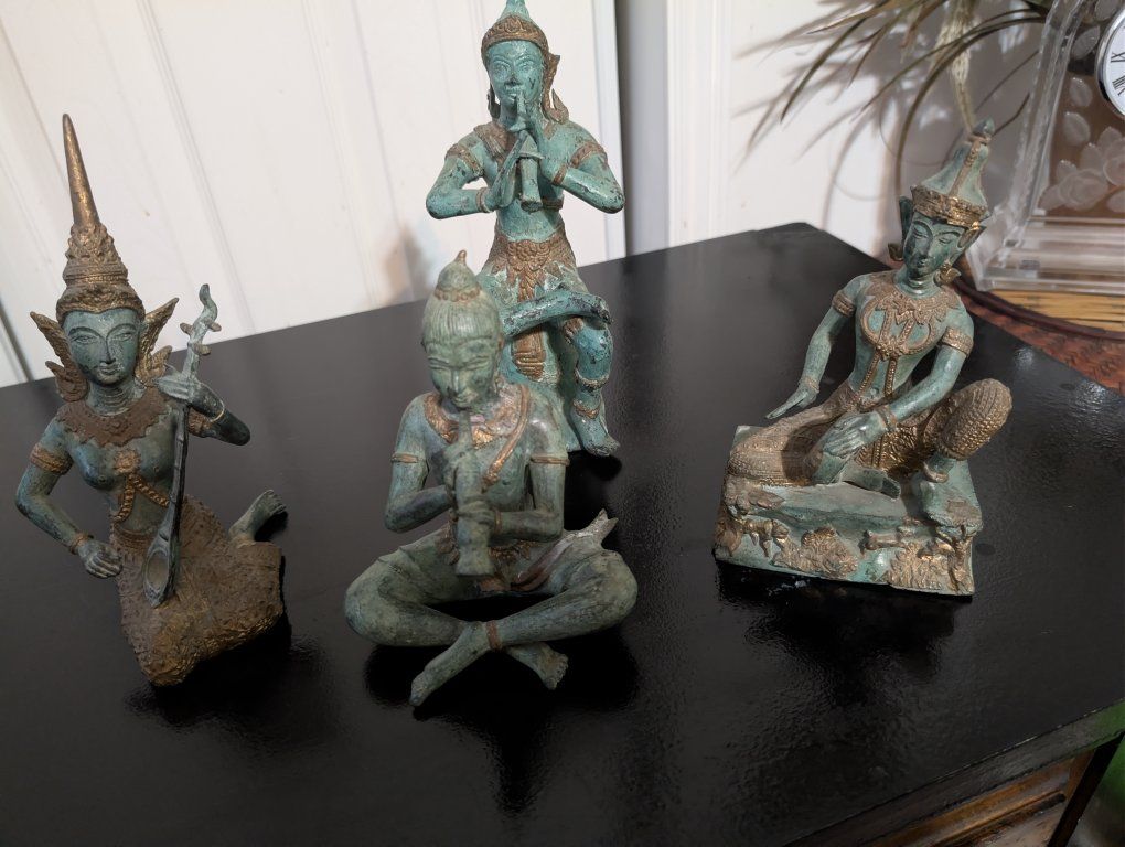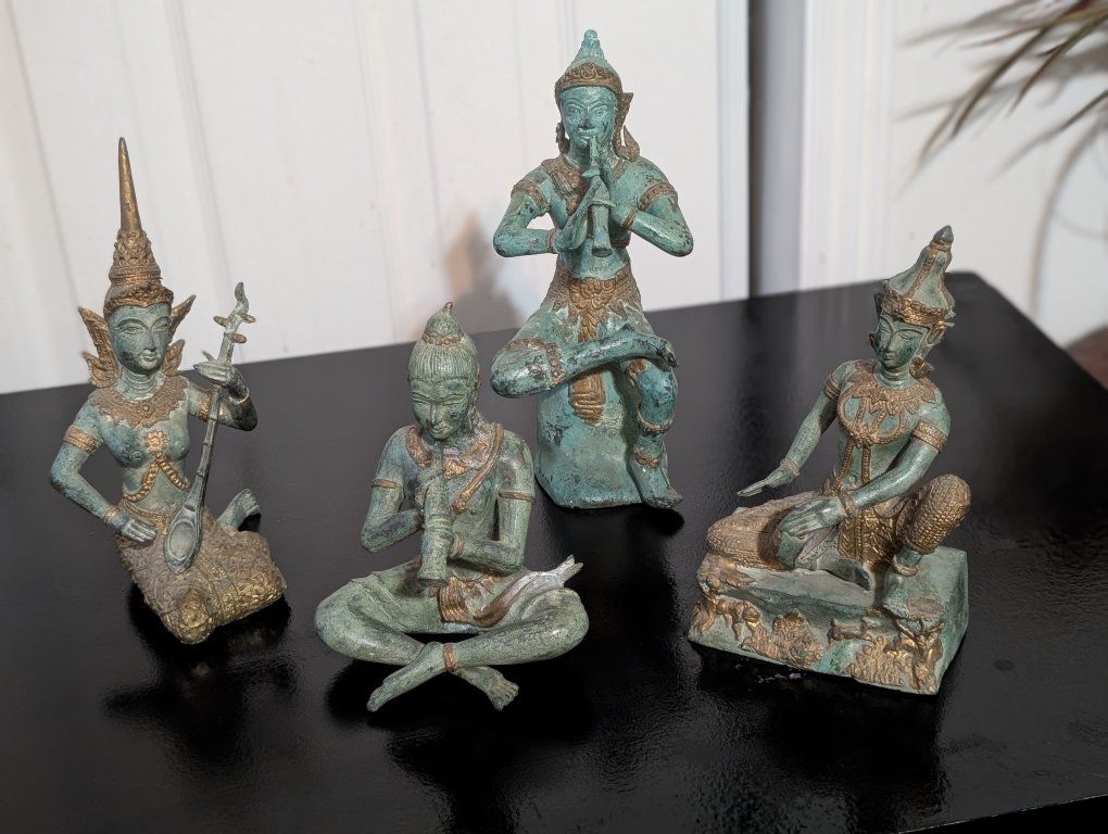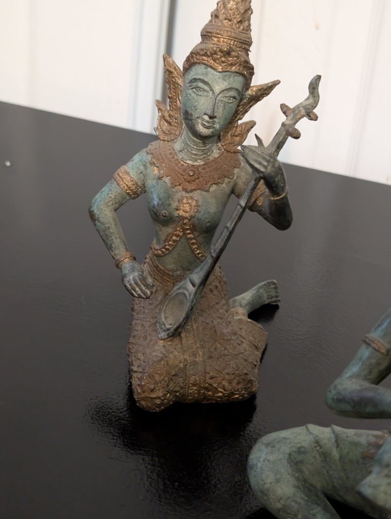 set of ANTIQUE THAI BRASS BRONZE STATUETTES