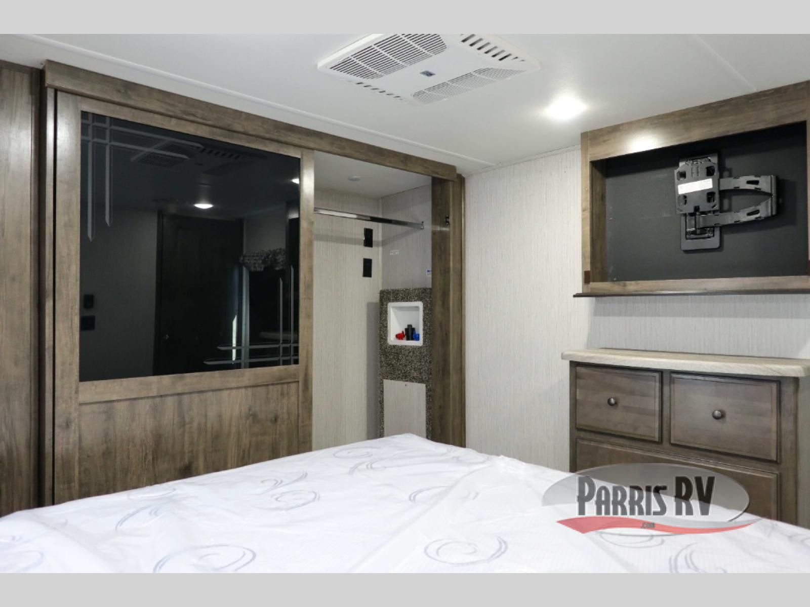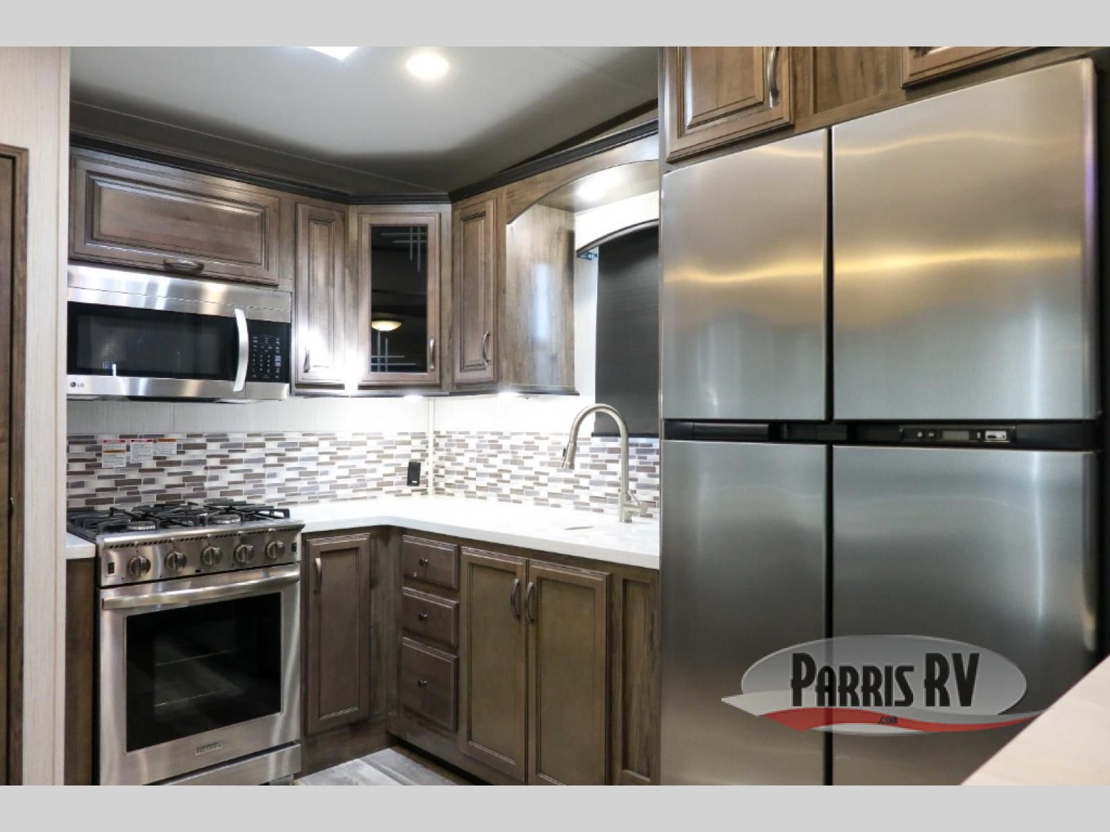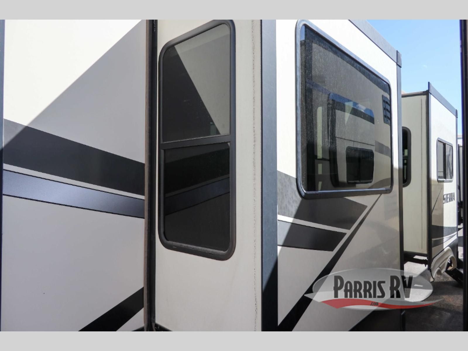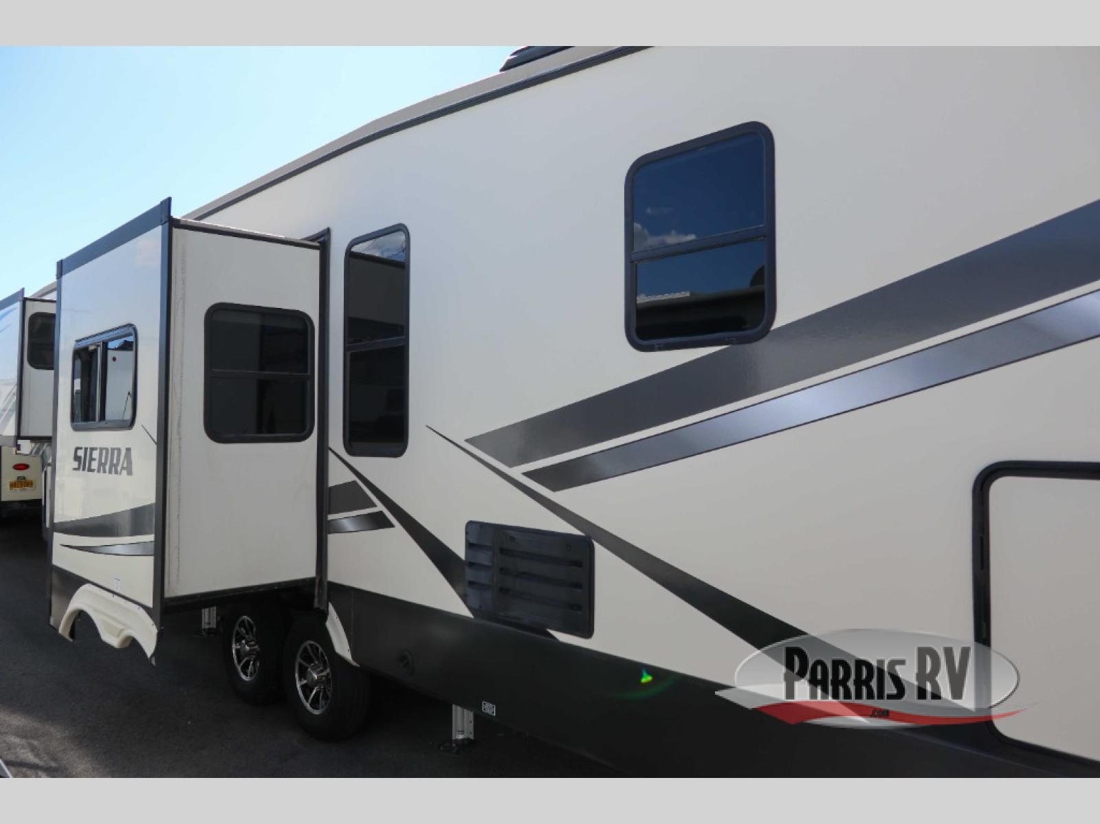 In any Forest River Sierra, you will find a line of luxury fifth wheels that brings you the very best in modern interiors and exteriors. Each of these elegant and high-class models has rustic wood plank linoleum, mocha accent crown molding over the kitchen cabinets, stainless steel appliances, a decorative backsplash, and a premium soundbar with built-in flush-mounted DVD player. The Sierra has been constructed with a welded aluminum-framed, vacuum-bonded laminated superstructure, a fully enclosed and heated underbelly, and enclosed and heated dump valves for years of enjoyment. You will also love the limited-time Platinum package that comes standard and provides you with extra features that will enhance many different aspects of the Sierra.