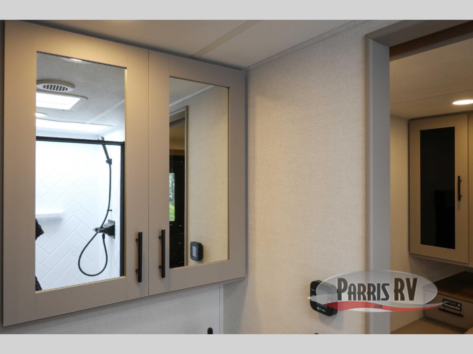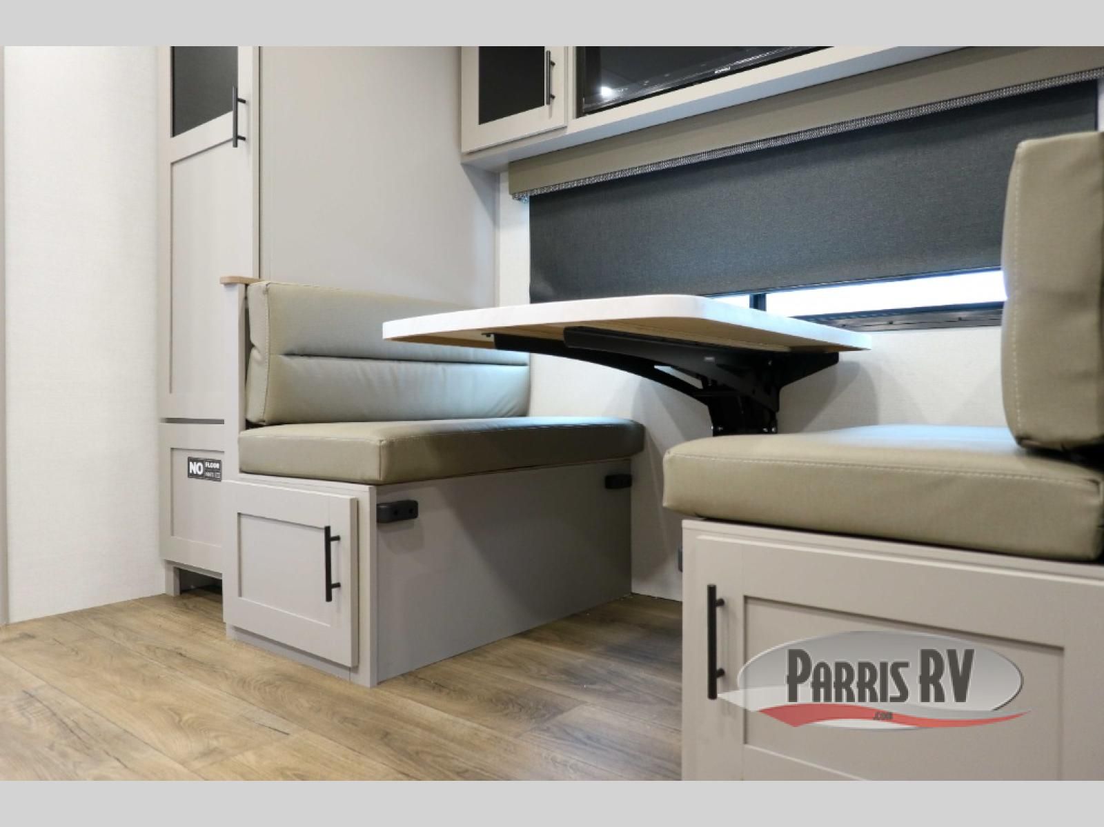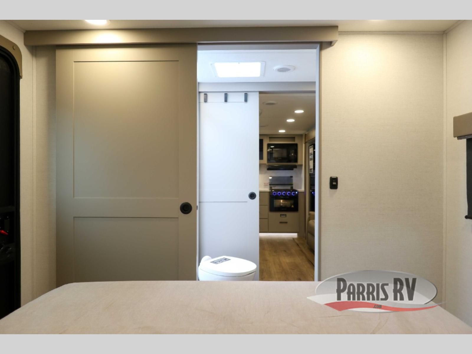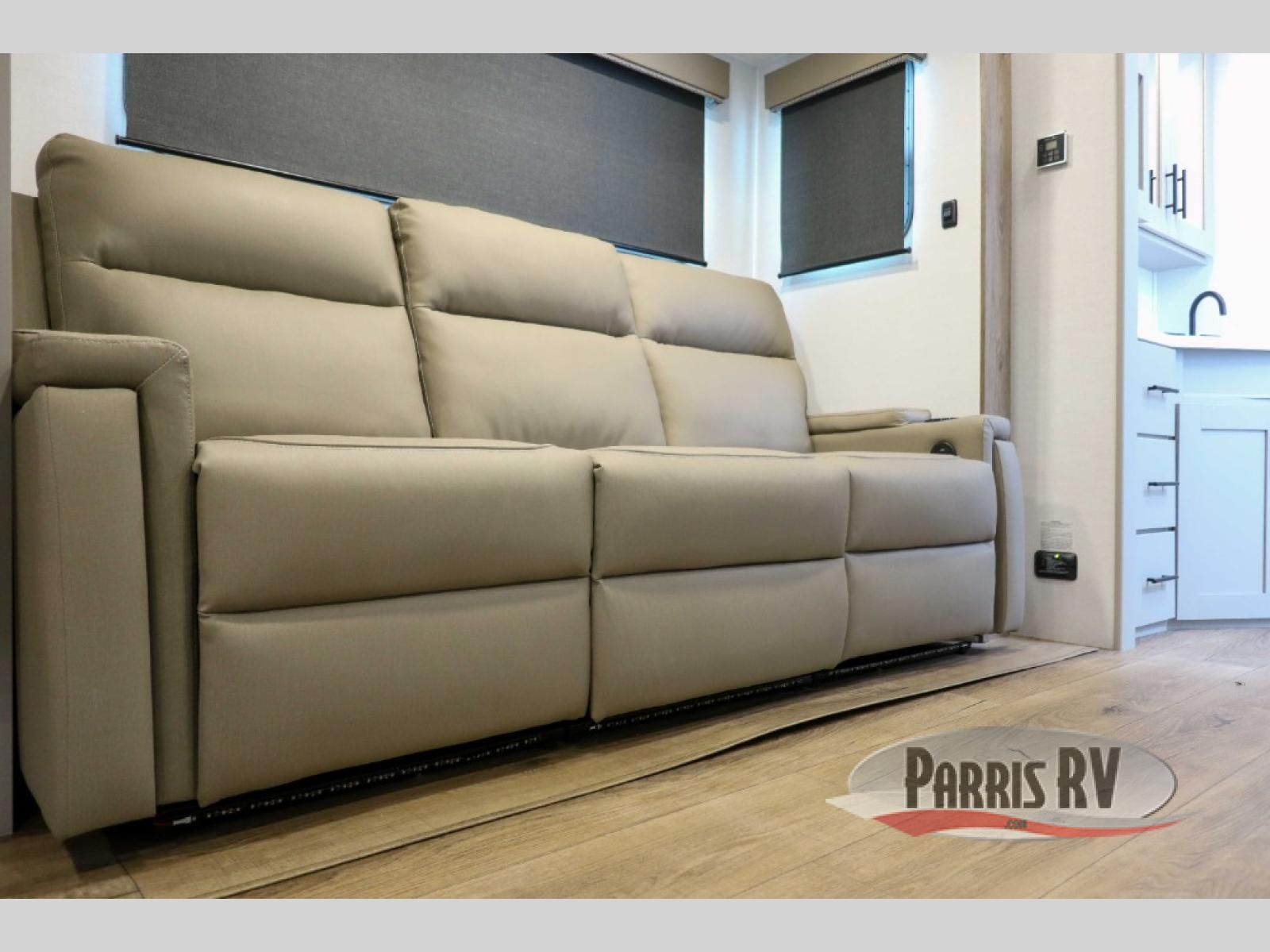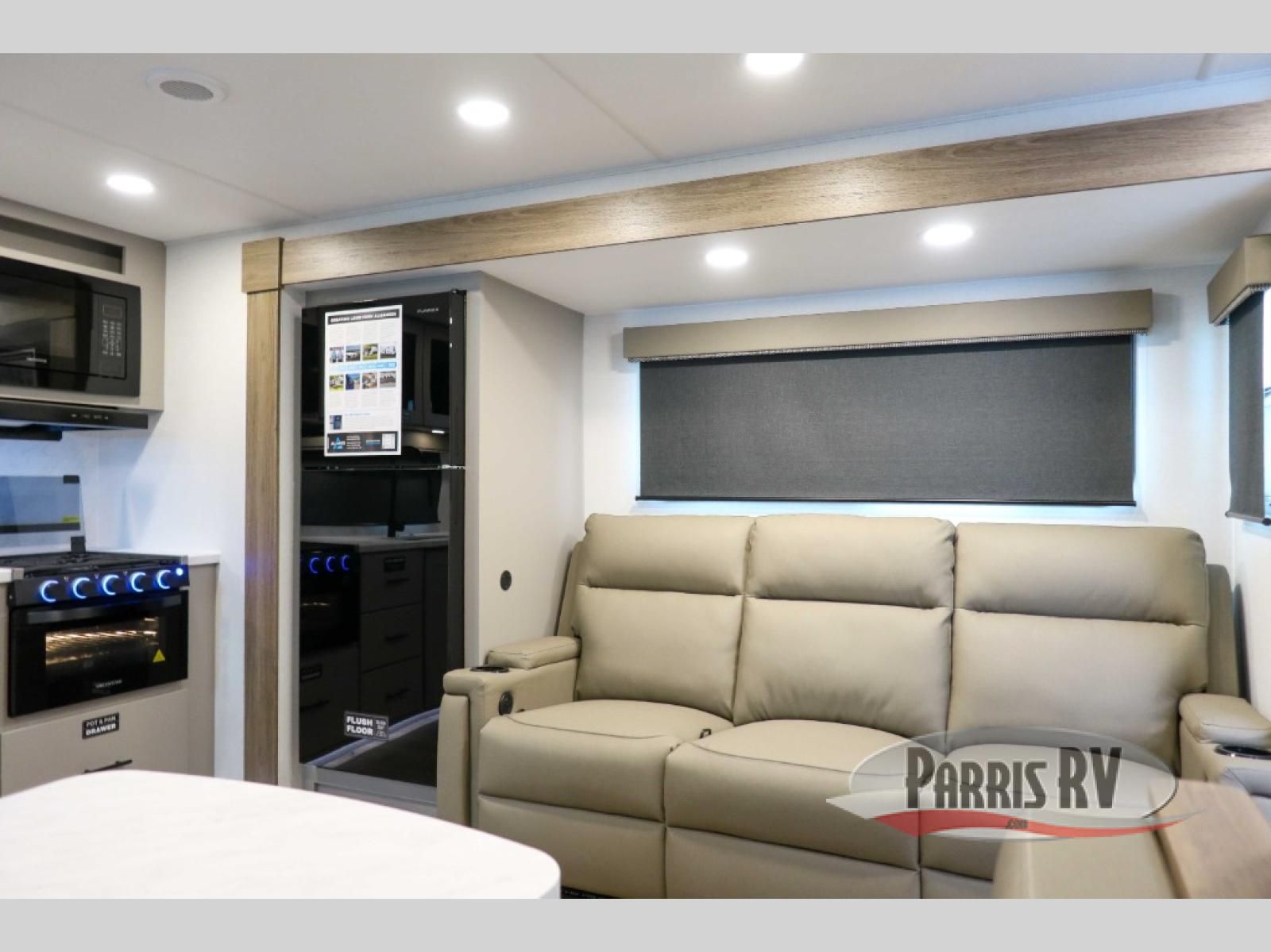 You'll love camping in this rear kitchen travel trailer with generous counter space and overhead storage for spices, dishes, and more. You can dine each day at the booth dinette or relax on the sofa slide out, which will provide more floor space. The spacious walk-thru bath includes a 30" x 36" shower, toilet, and vanity so you can clean up each day. Head to the front master bedroom where you can sleep soundly on the walk-around queen bed with dual nightstands and wardrobes. The second entry door is also found in this room so you can slip out for an early morning run!