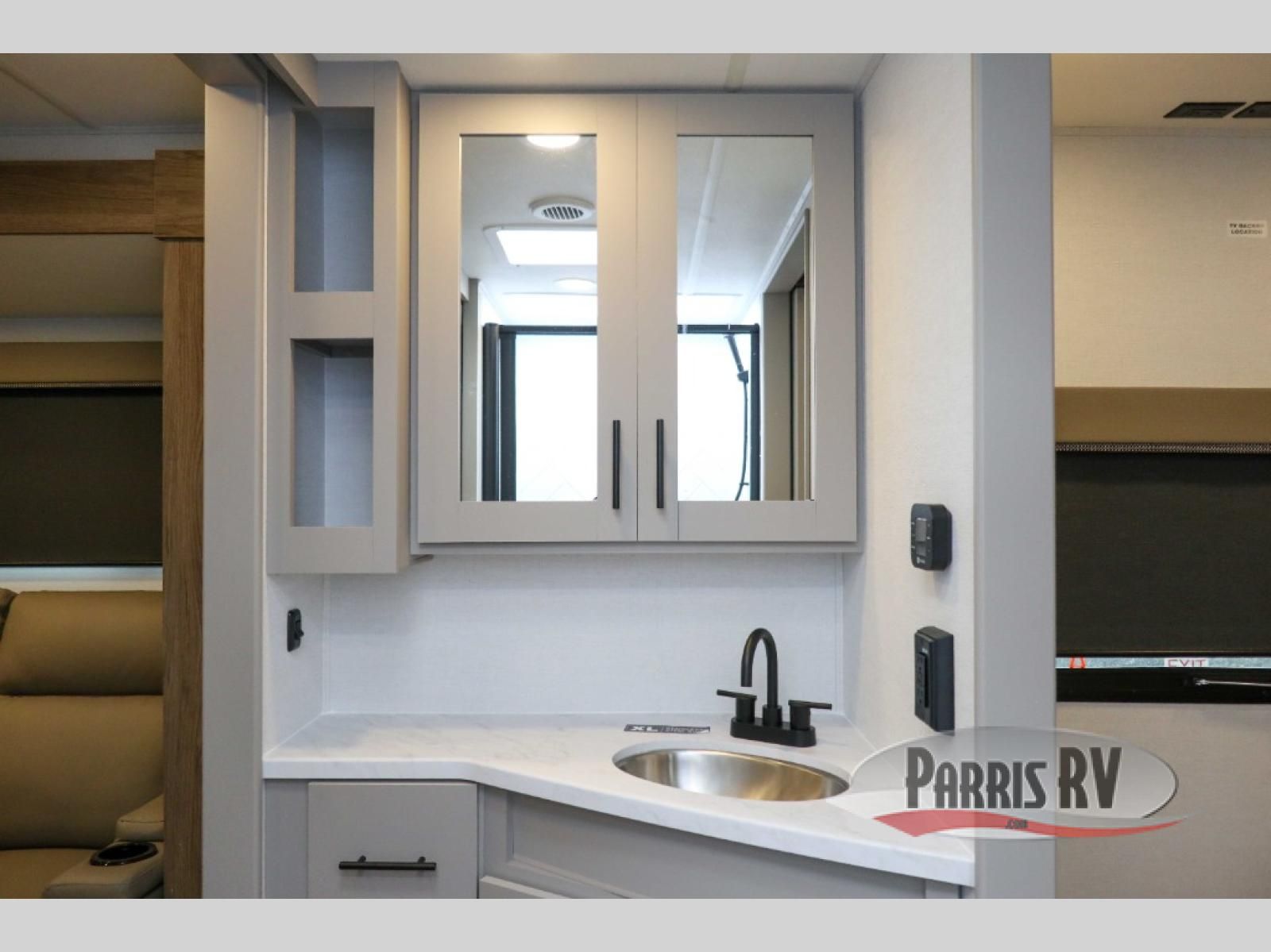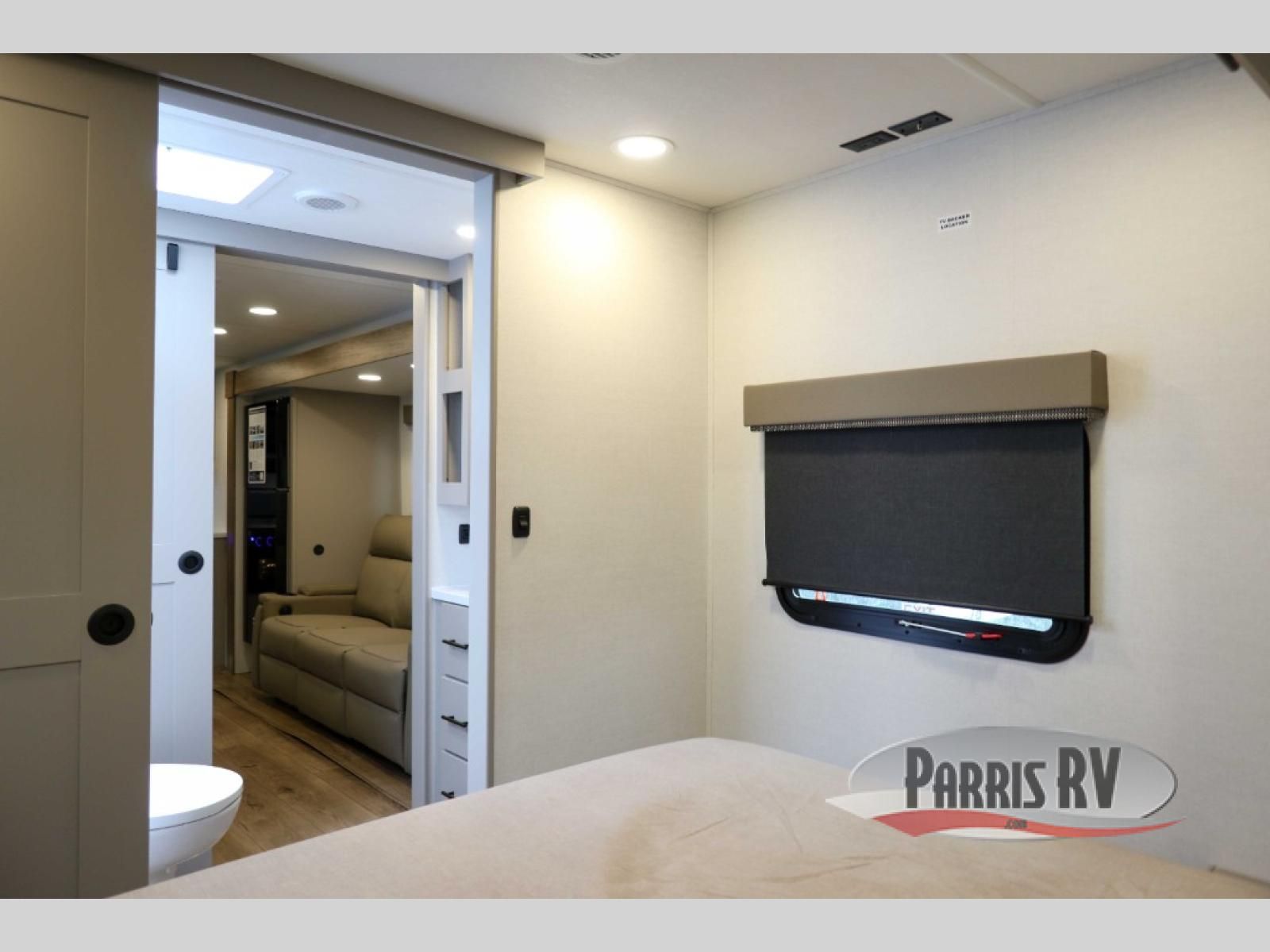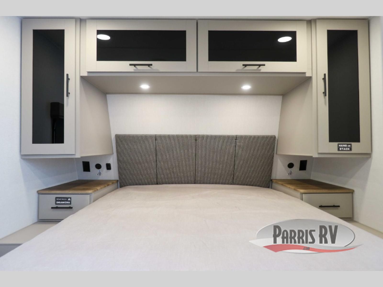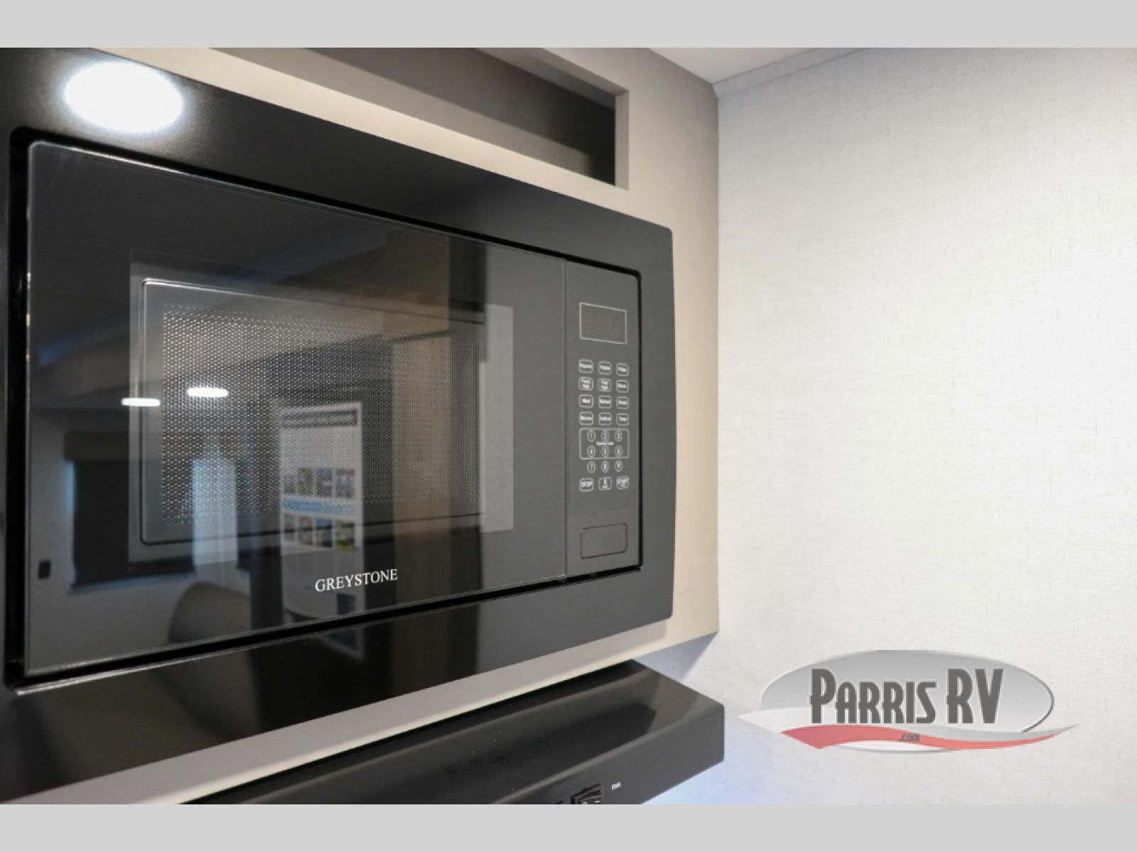You'll love camping in this rear kitchen travel trailer with generous counter space and overhead storage for spices, dishes, and more. You can dine each day at the booth dinette or relax on the sofa slide out, which will provide more floor space. The spacious walk-thru bath includes a 30" x 36" shower, toilet, and vanity so you can clean up each day. Head to the front master bedroom where you can sleep soundly on the walk-around queen bed with dual nightstands and wardrobes. The second entry door is also found in this room so you can slip out for an early morning run!
