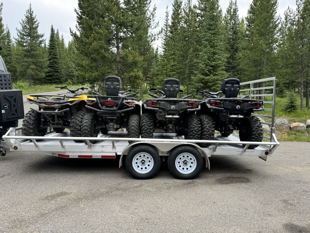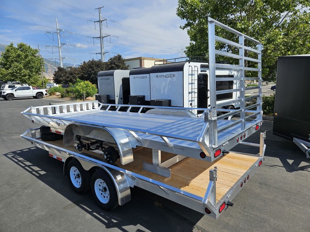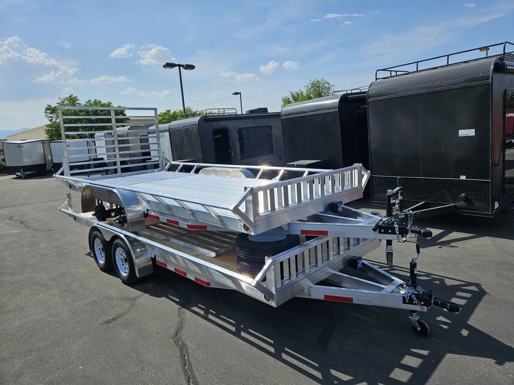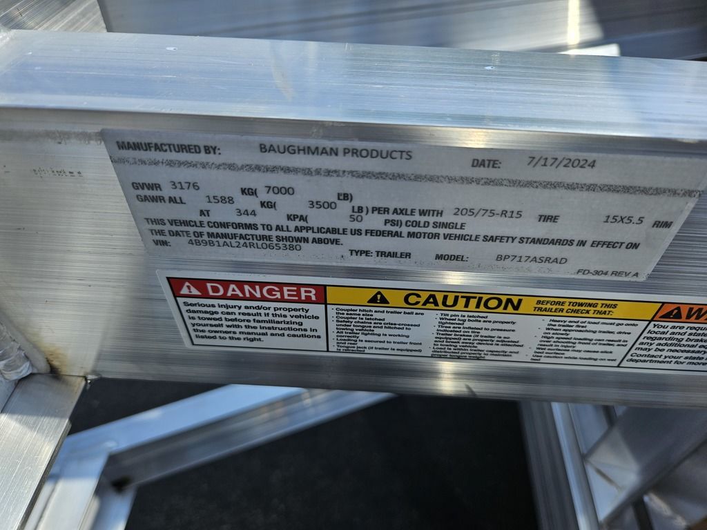 BRAND NEW Baughman Aluminum 7x17 ALL ALUMINUM DECK Utility with Side LOAD Ramps AND Rear Ramp!! Angled Sides for easy side load and unload!! This is not your average trailer, this Premium Baughman comes with high strength aluminum welds, premium decking with recessed D rings for easy tie down, super light side ramps with built in storage, plus an easy to use pin locking ramp!! Did you know this trailer is light enough for most people to simply hand lift off your trailer ball!!?? Super light and easy to move around with built in tongue jack wheel!!! Recessed Lights, ALL Aluminum Deck, and More! Call or Text to come pick up this gorgeous trailer!! RL065380