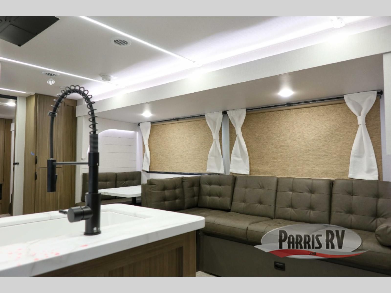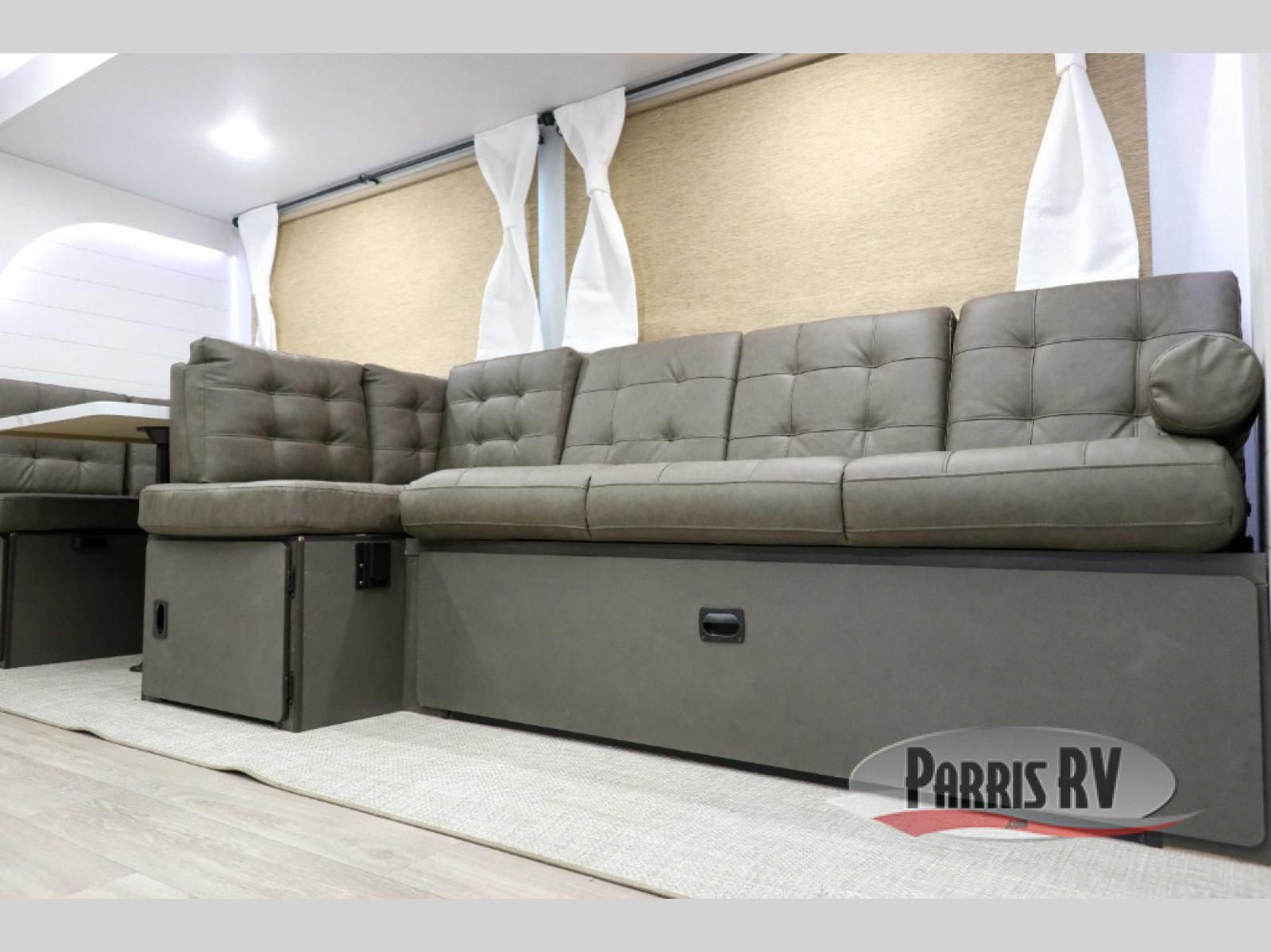 The rear private bunkhouse in this Salem travel trailer is super accommodating for your kids or your overnight guests! It has two opposing slides which provide extra floor space and a full-width closet/entertainment center which delivers extra space for backpacks and tennis shoes. The front private bedroom will be perfect for you with its custom king bed and dual closets, and any additional guests can sleep on the L-shaped versa lounge. There is also a Versa Flex table here to dine at or get some work done. Everyone will enjoy their own space when it's time to freshen up in the full bath with a walk-in shower, and the chef of the group will have all the appliances needed to make meals each day. And don't forget about the outdoor kitchen for outdoor fun!