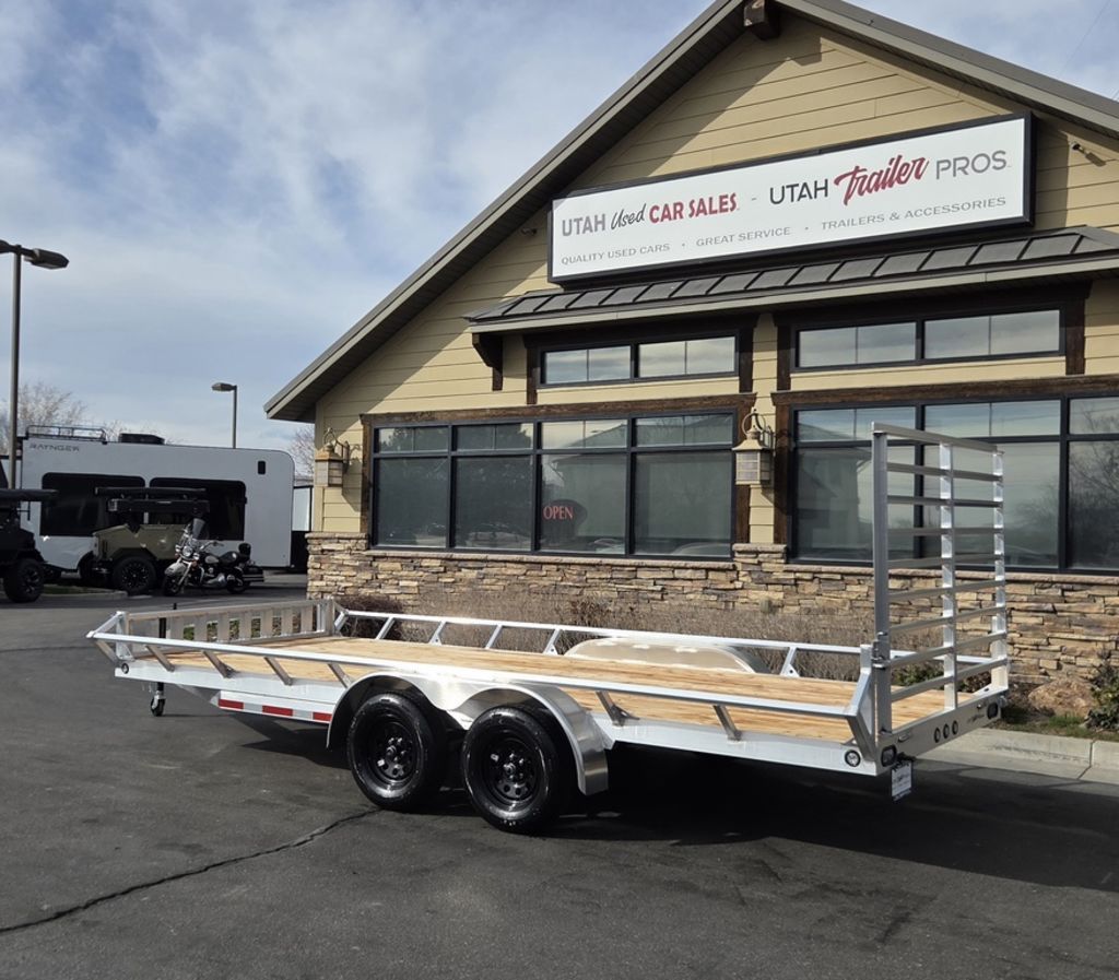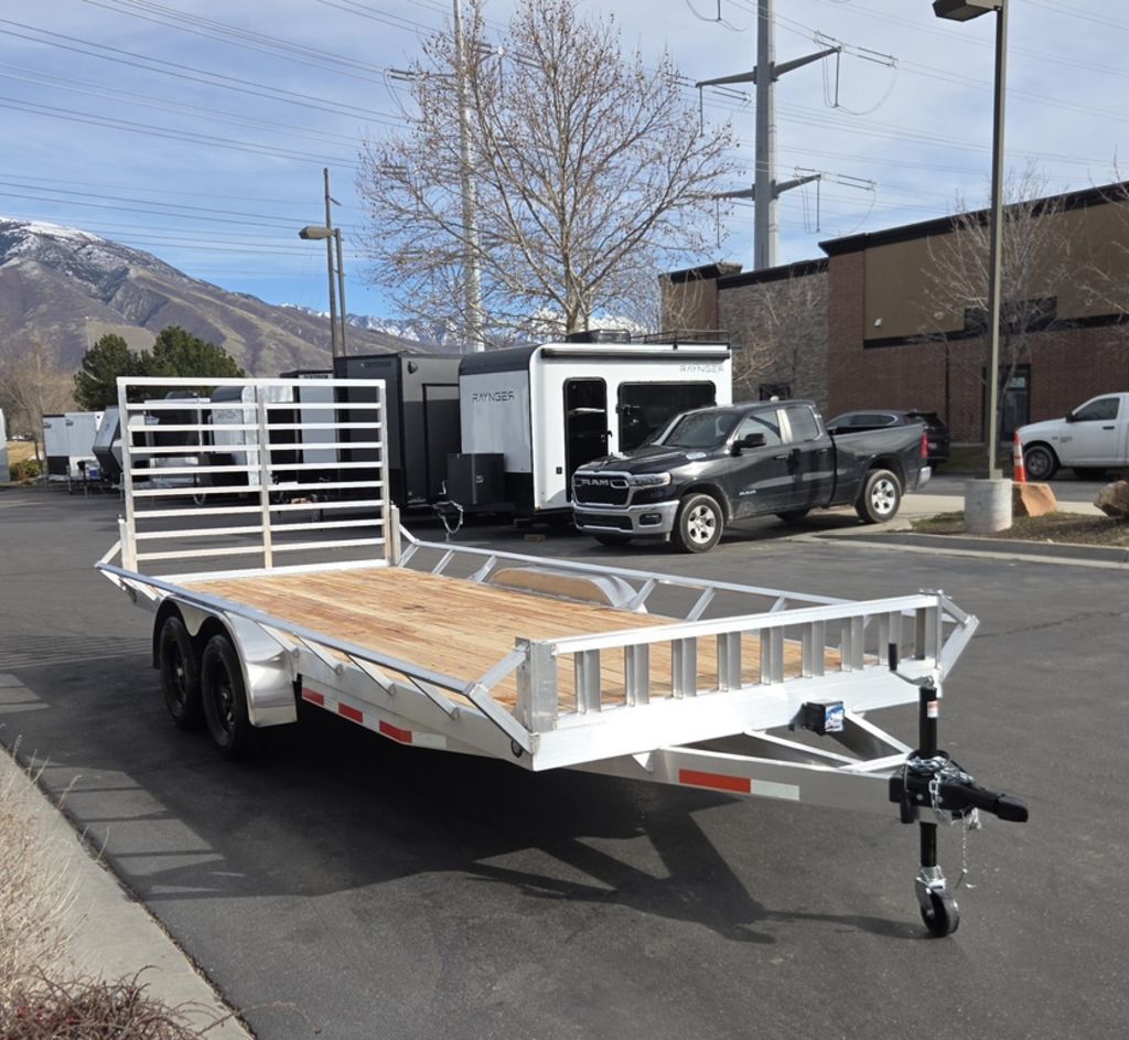 BRAND NEW Baughman Aluminum 7x18 Utility with Side Ramps AND Rear Ramp!! Angled Sides for easy side load and unload!! This is not your average trailer, this Premium Baughman comes with high strength aluminum welds, premium decking with recessed D rings for easy tie down, super light side ramps with built in storage, plus an easy to use pin locking ramp!! Did you know this trailer is light enough for most people to simply hand lift off your trailer ball!!?? Super light and easy to move around with built in tongue jack wheel!!! Recessed Lights, Weather Treated Wood Deck, and More! Call or Text to come pick up this gorgeous trailer!! 7TL065182