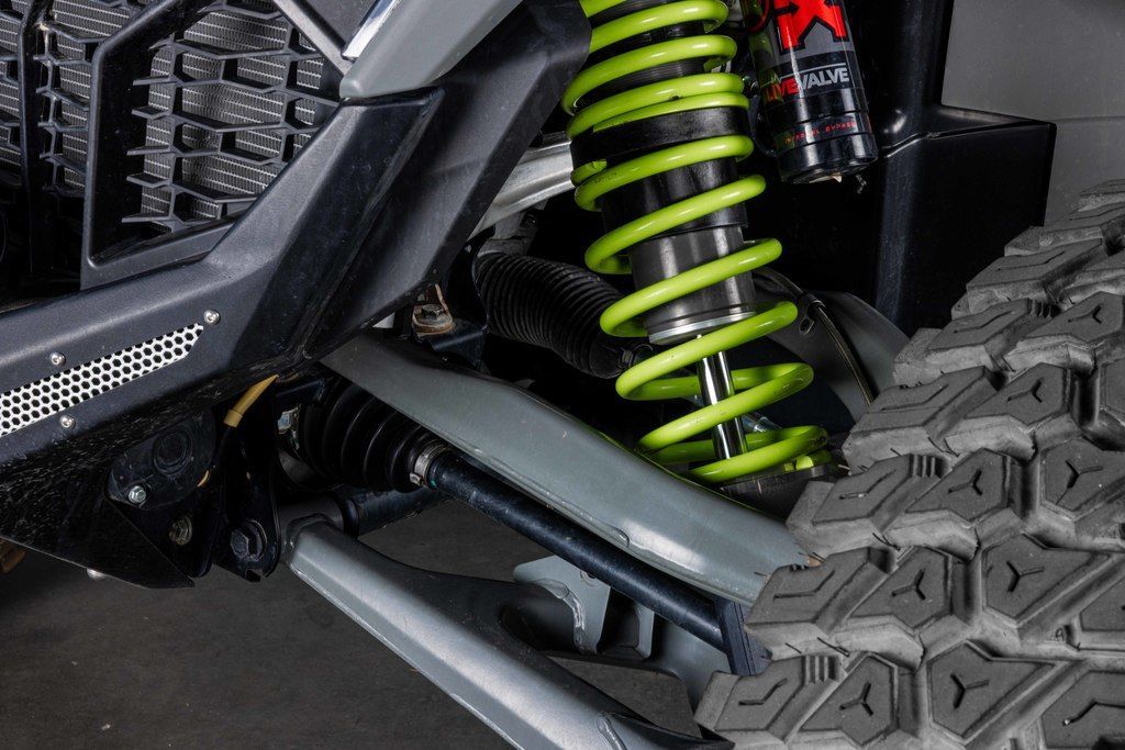 Equipped with a boxed dual A-Arm with 3-piece stabilizer bar on the front-end and boxed gusseting, toe link, high-clearance radius rods and stabilizer bar in the rear.