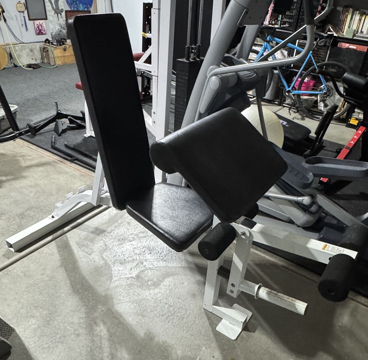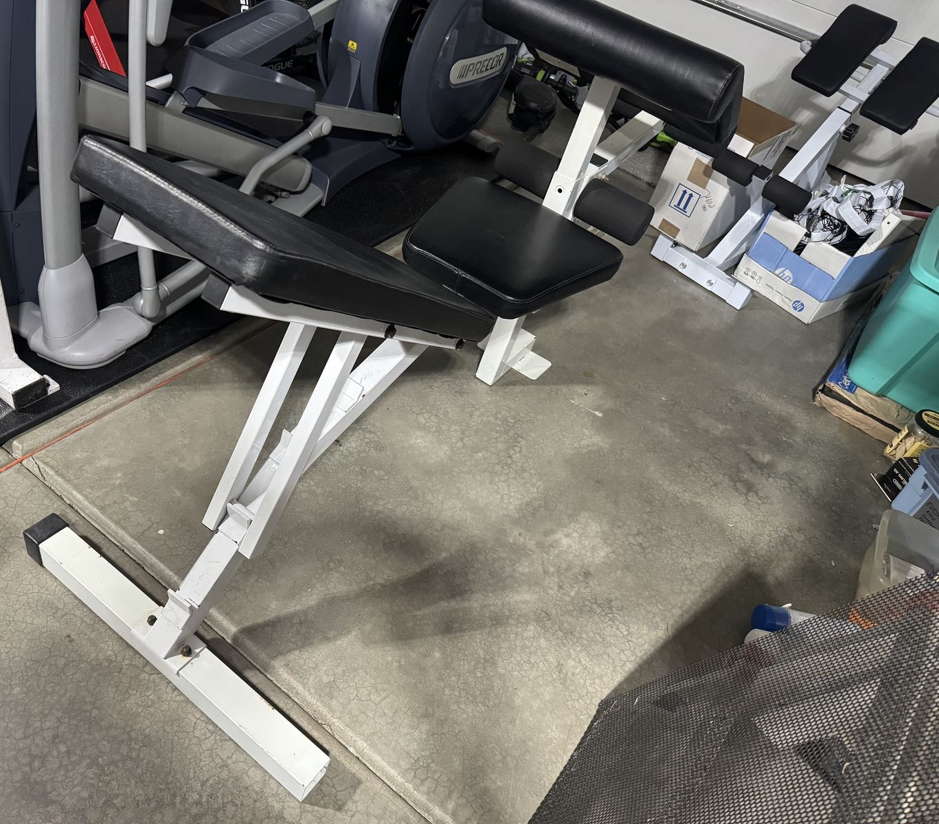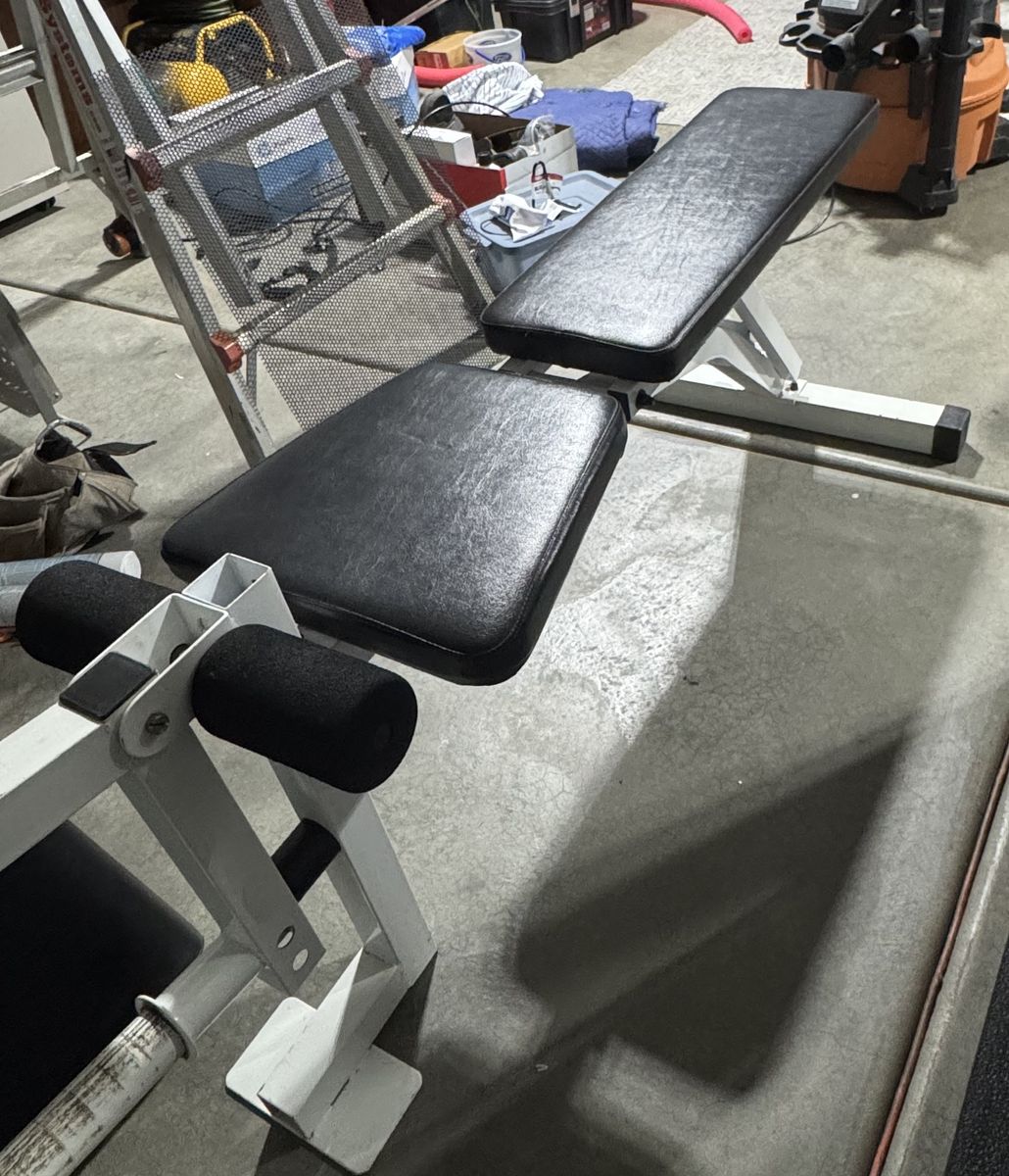 VenmoWeight Bench in good condition with no tears or deterioration in the padding. Includes a seldom used removable leg curl and arm curl. The back goes flat or angles up to 90 degrees.