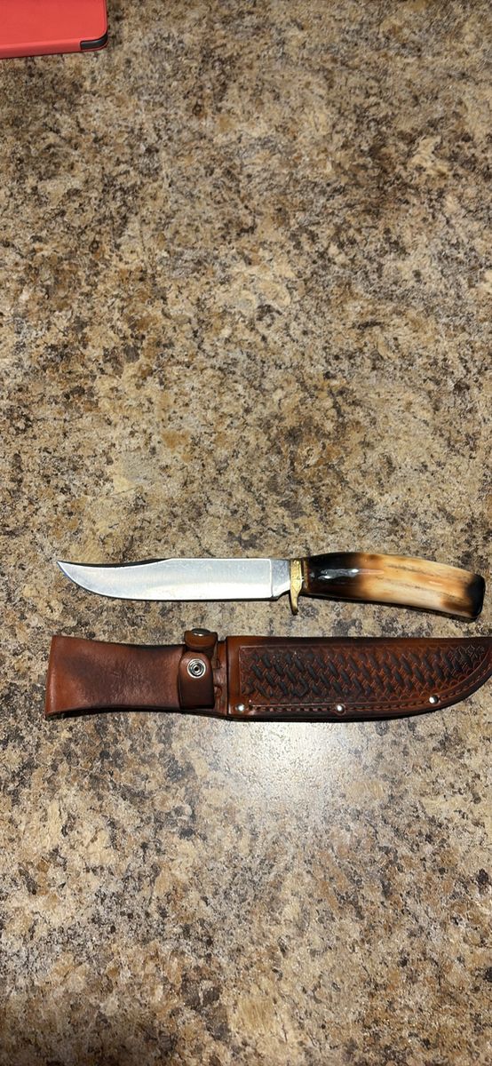 VenmoThis is a handmade bone knife with beautiful coloring on the handle, comes with a leather sheath.